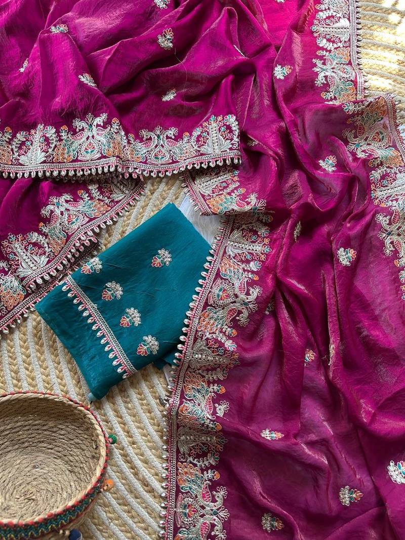 | Product Name | Rani Pink Color Embroidery And Butti Work Fandy Sattin Silk Saree | |