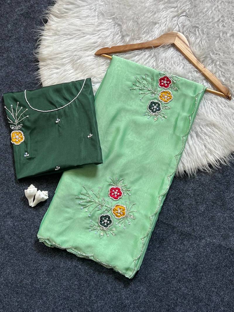 | • | Blouse | : | Color- Green / Fabric- Silk Blend |
