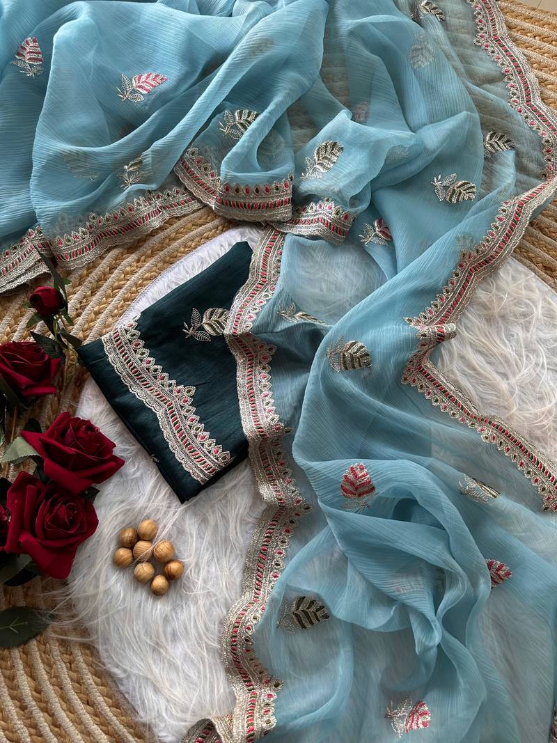 | Product Name | Sky Blue Color Embroidery And Detailed Border Work Chiffon Saree | |