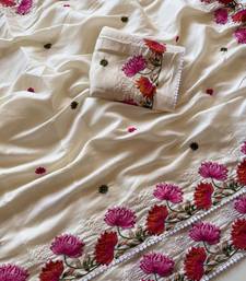 | Product Name | White Color Embroidered Tussar Silk Saree | |