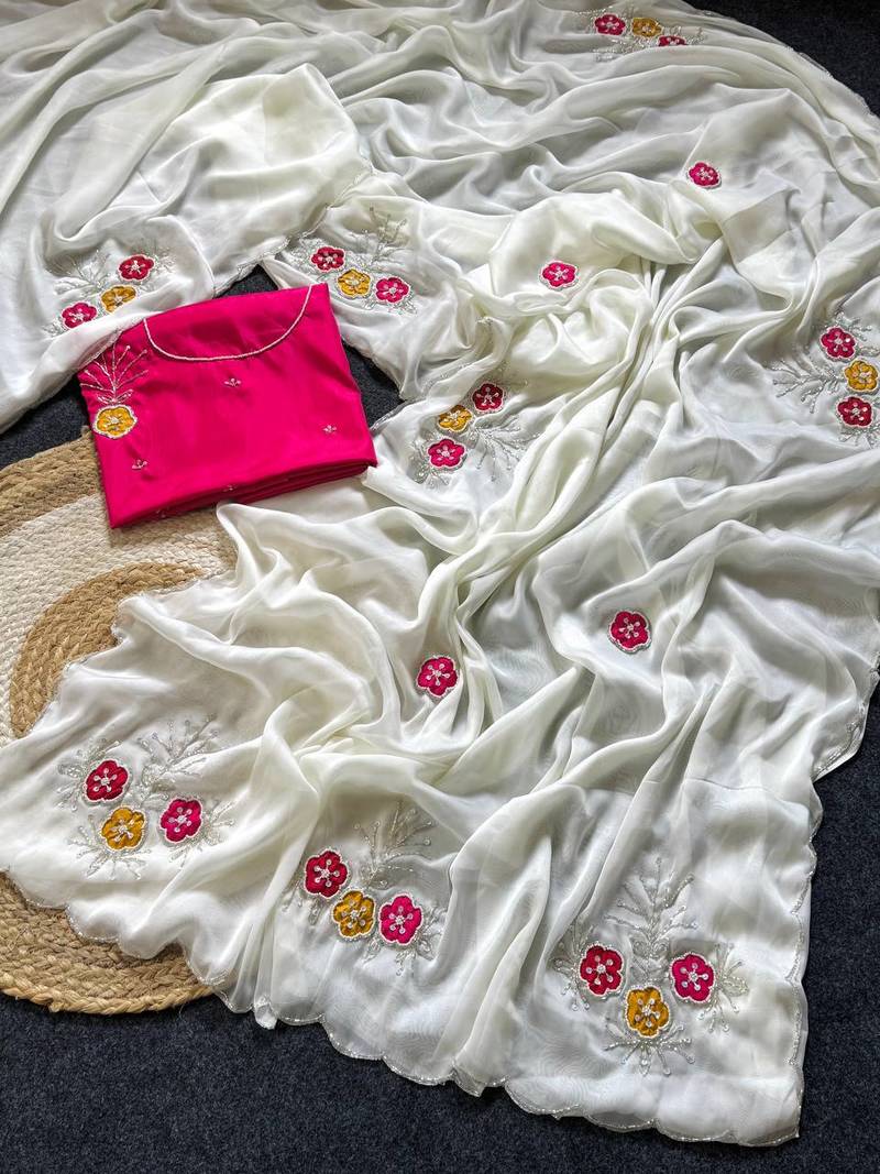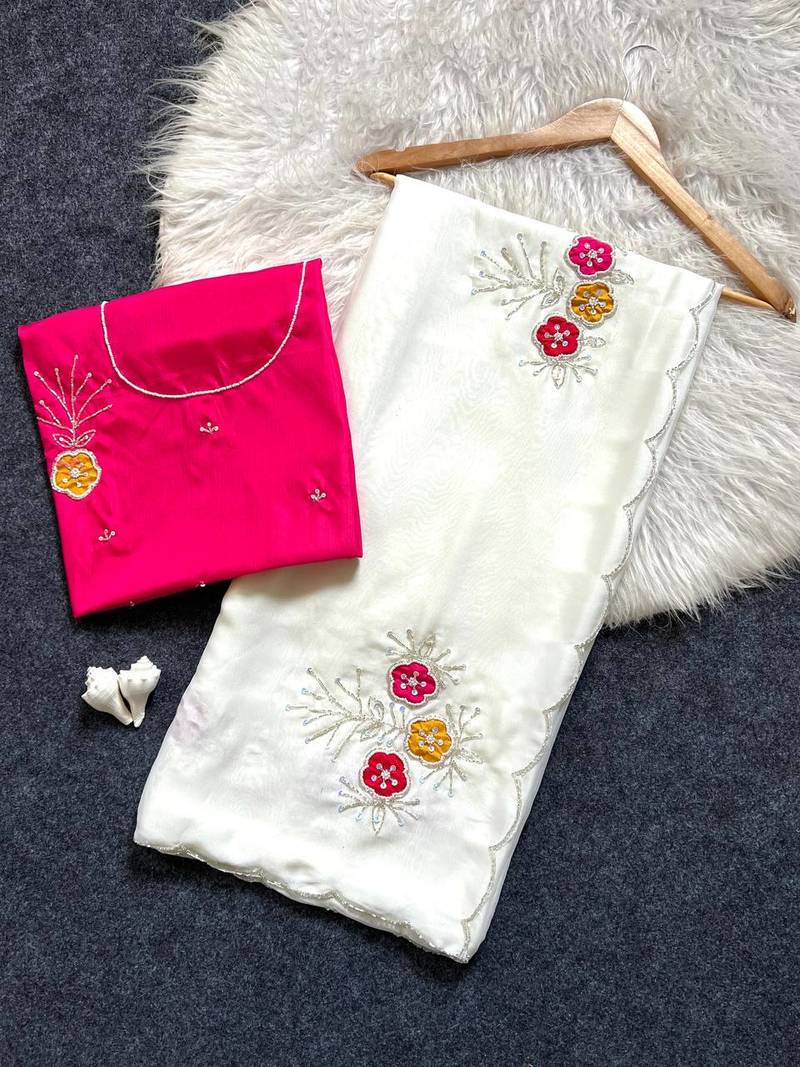 | Product Name | White Color Handwork Khatali Butta With Cutdana Sequence Work Silk Saree | |