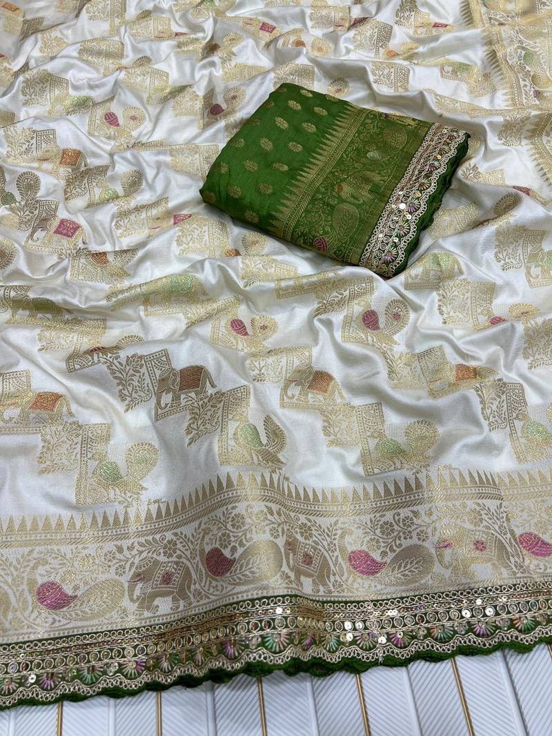 | Product Name | White Color Premium Designer Dola S Ilk Blnd Saree | |