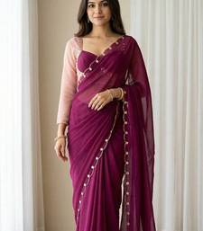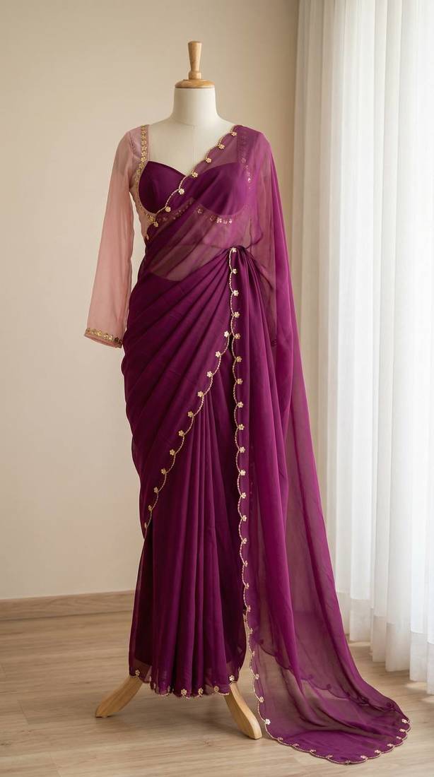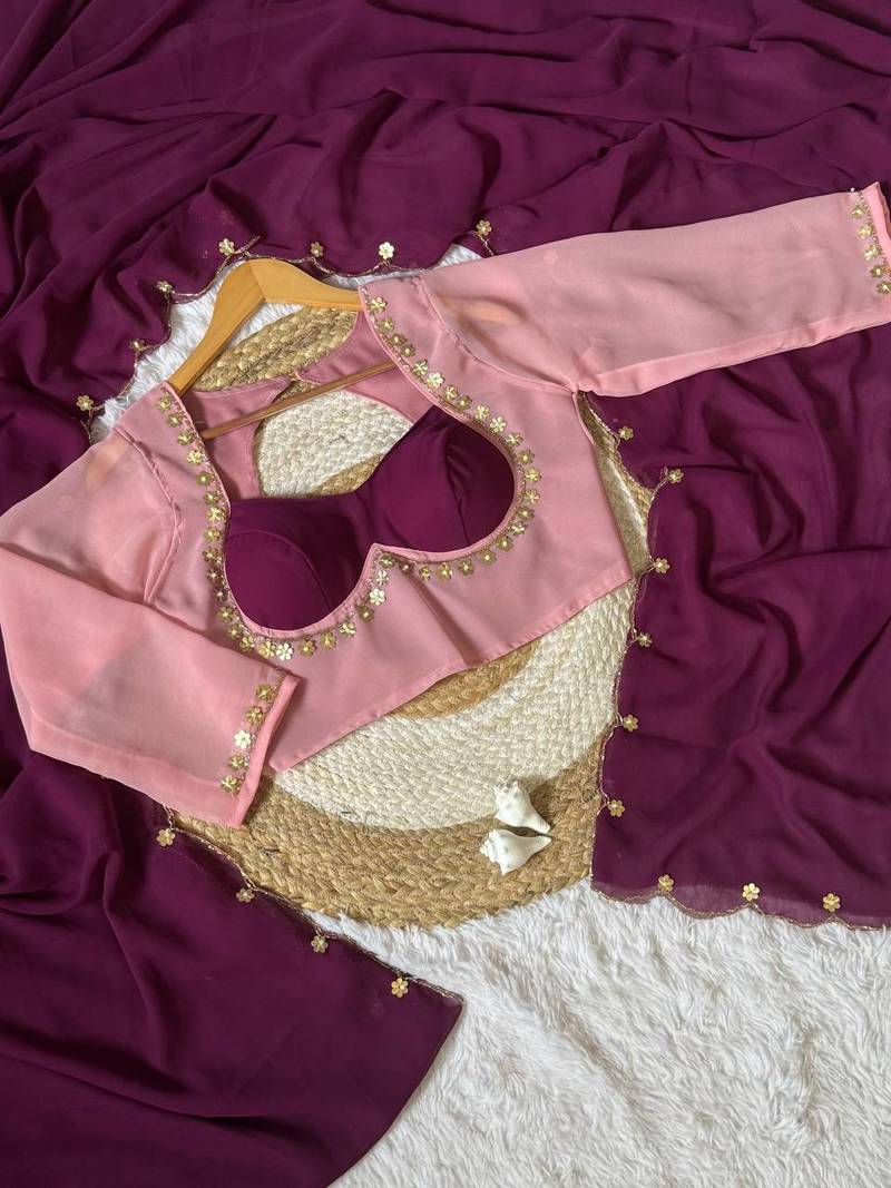 Wine color hatali handowrk georgette saree witkh cutdana with moti work
