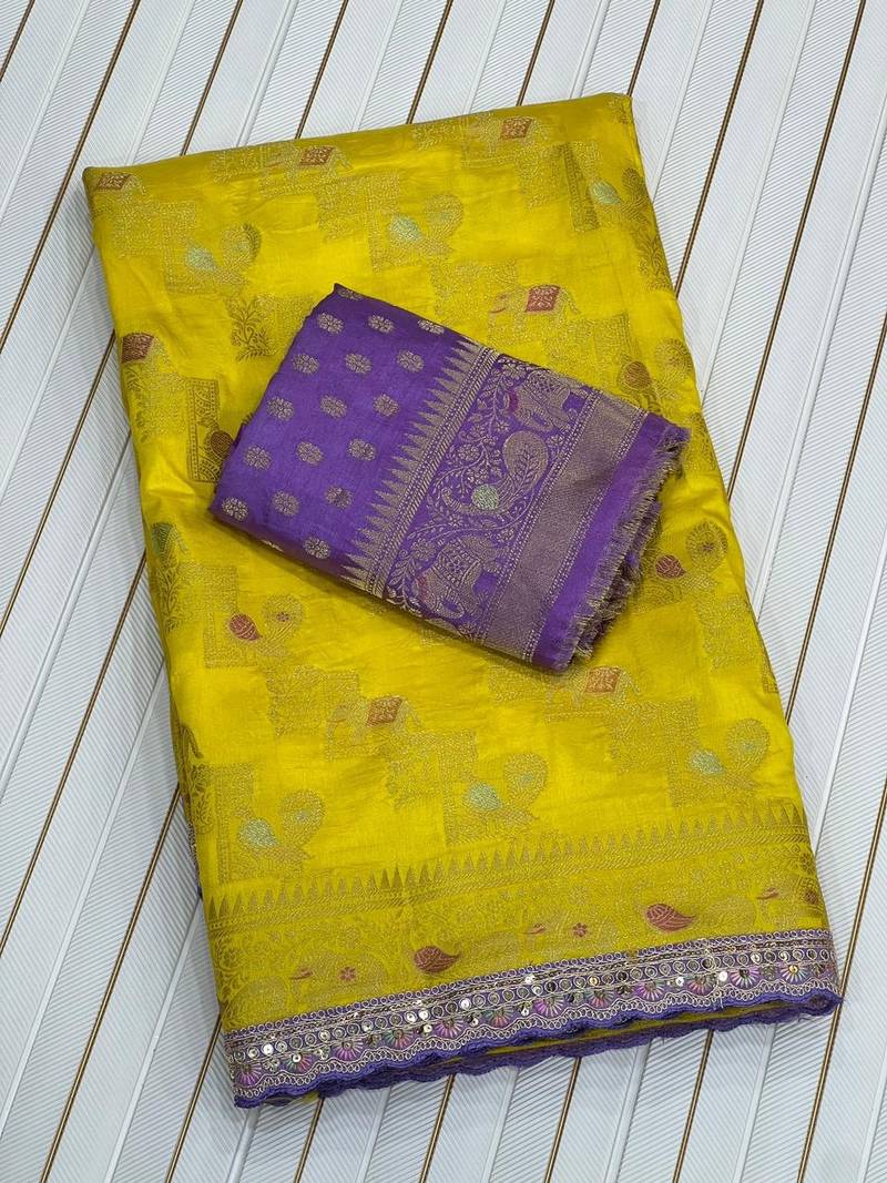 | Product Name | Yellow Color Premium Designer Dola S Ilk Blnd Saree | |