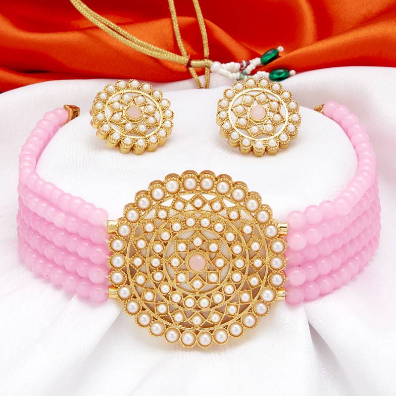 | Product Name | Sukkhi Gorgeous Gold Plated Pink Pearl Choker Necklace Set For Women | |