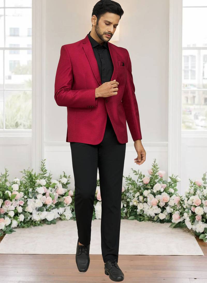 | Product Name | Maroon Jacquard Plain Solid Full Sleeve Blazer And Pant For Men | |