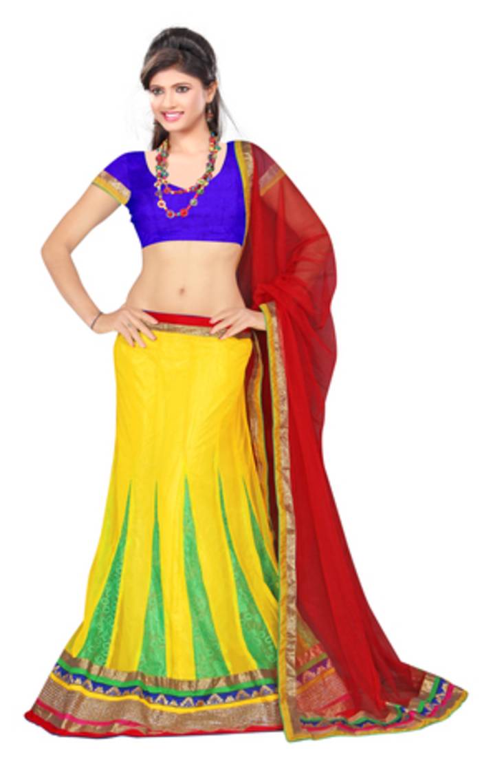 | Product Description | Yellow And Light Green Net Lehenga With Inner Silk, Blue Velvet Blouse And Net Red Dupatta With Border Lace |