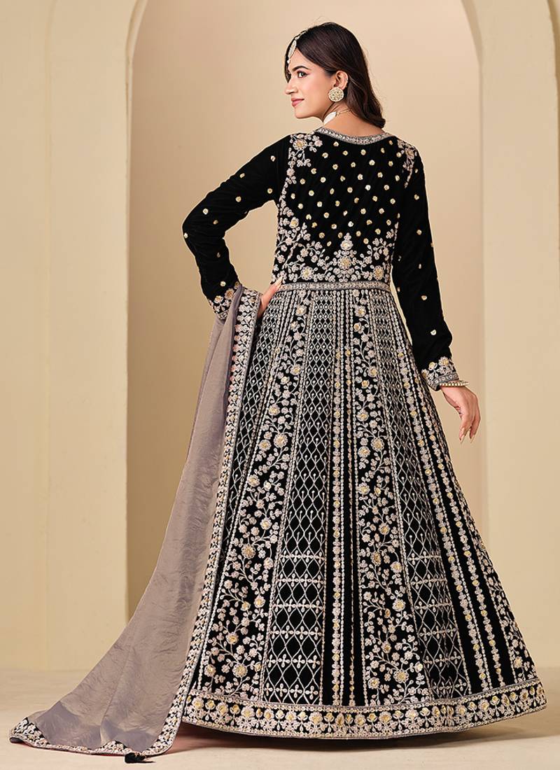 | Product Name | Black Embroidered Sequence Velvet Anarkali Suit | |