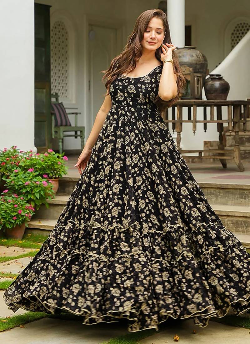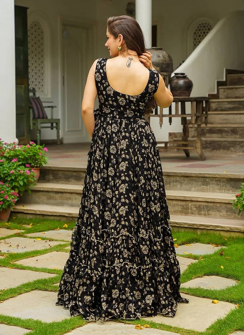 | Product Name | Black Heavy Digital Printed Georgette Gown Style | |