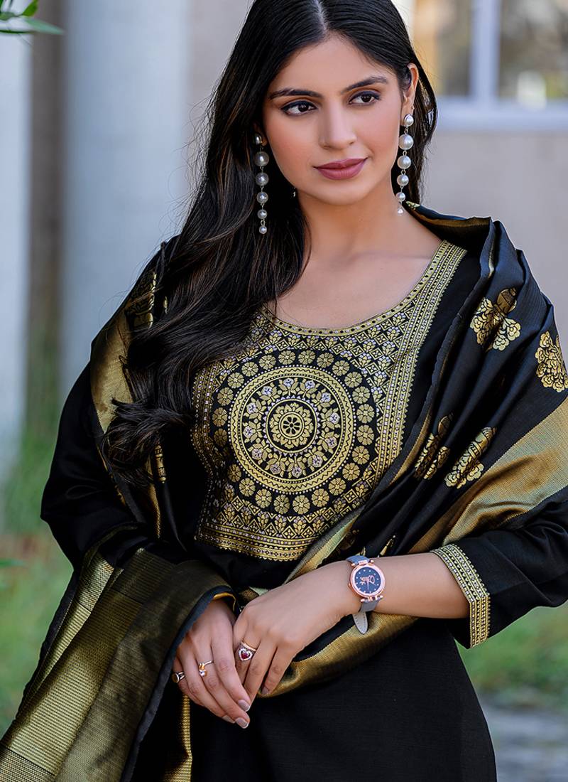 | Product Name | Black Jacquard Cotton Blend Jacquard Straight Kurta Set With Dupatta For Women | |