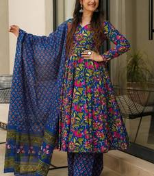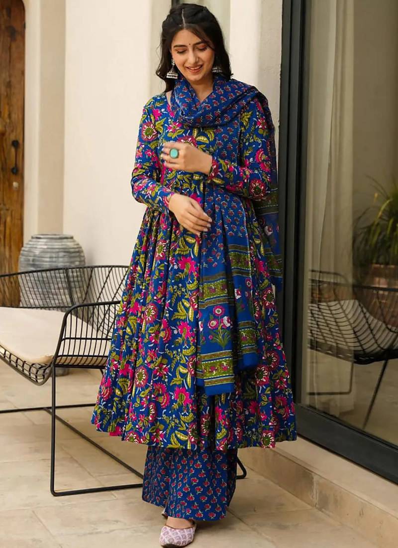 Product Name Blue Heavy Digital Printed Maslin Anarkali Palazzo Style