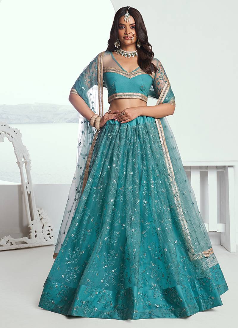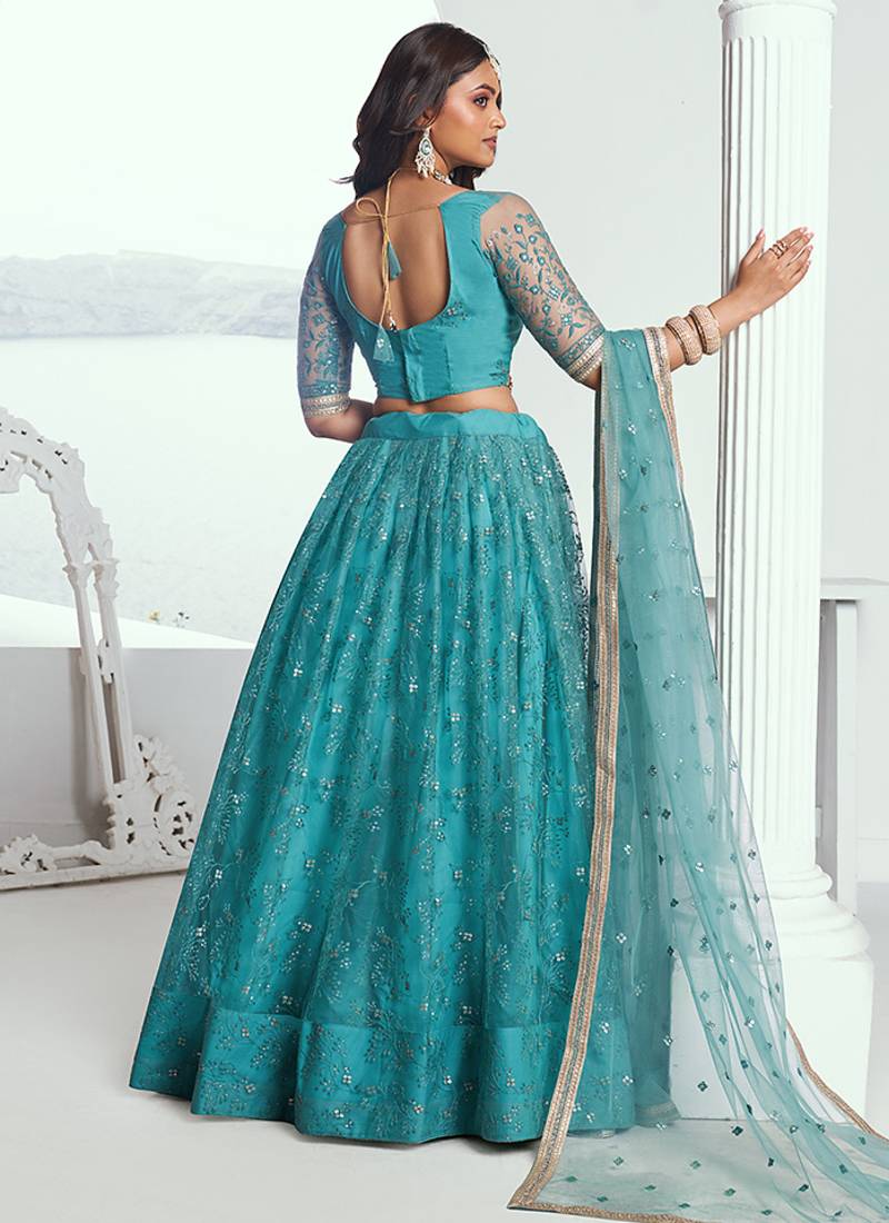 | Product Name | Blue Thread & Sequins Embroidery Work Net Lehenga | |