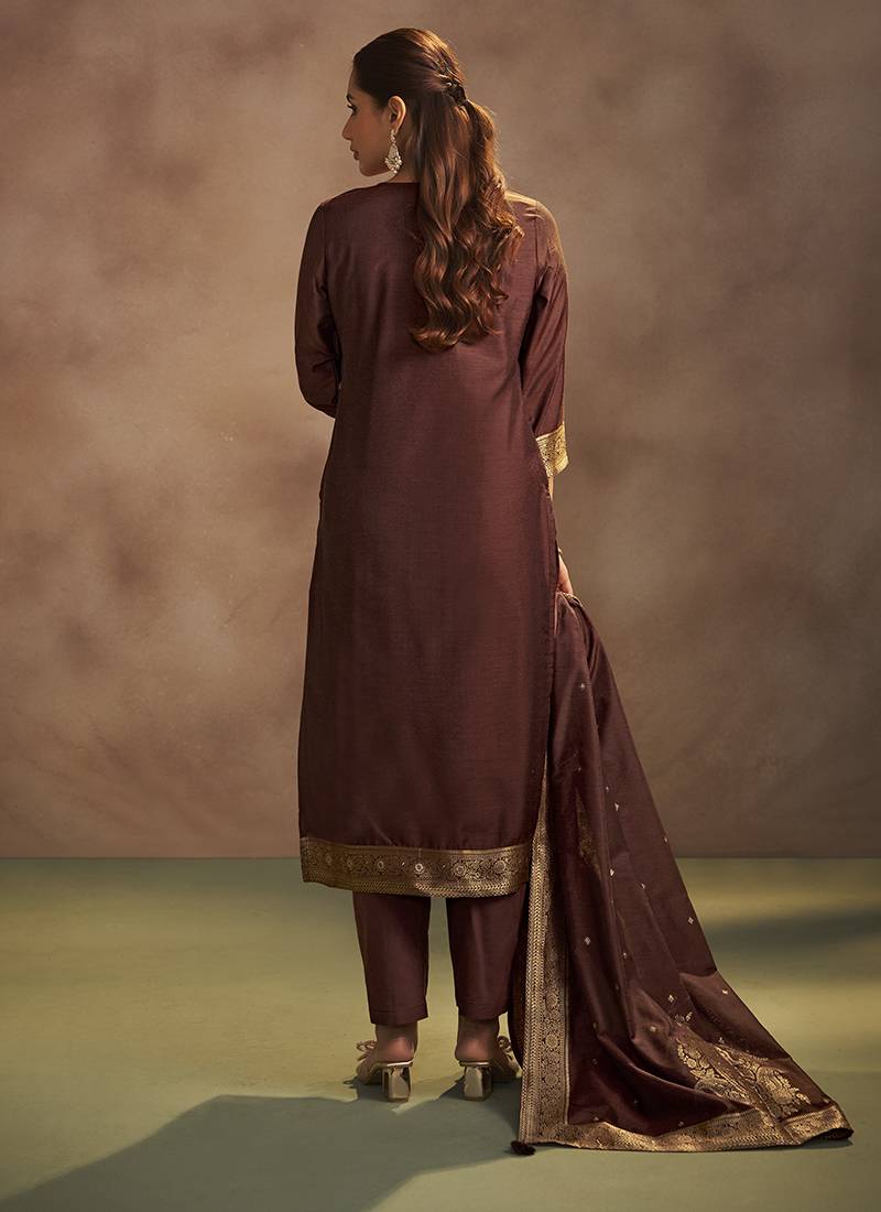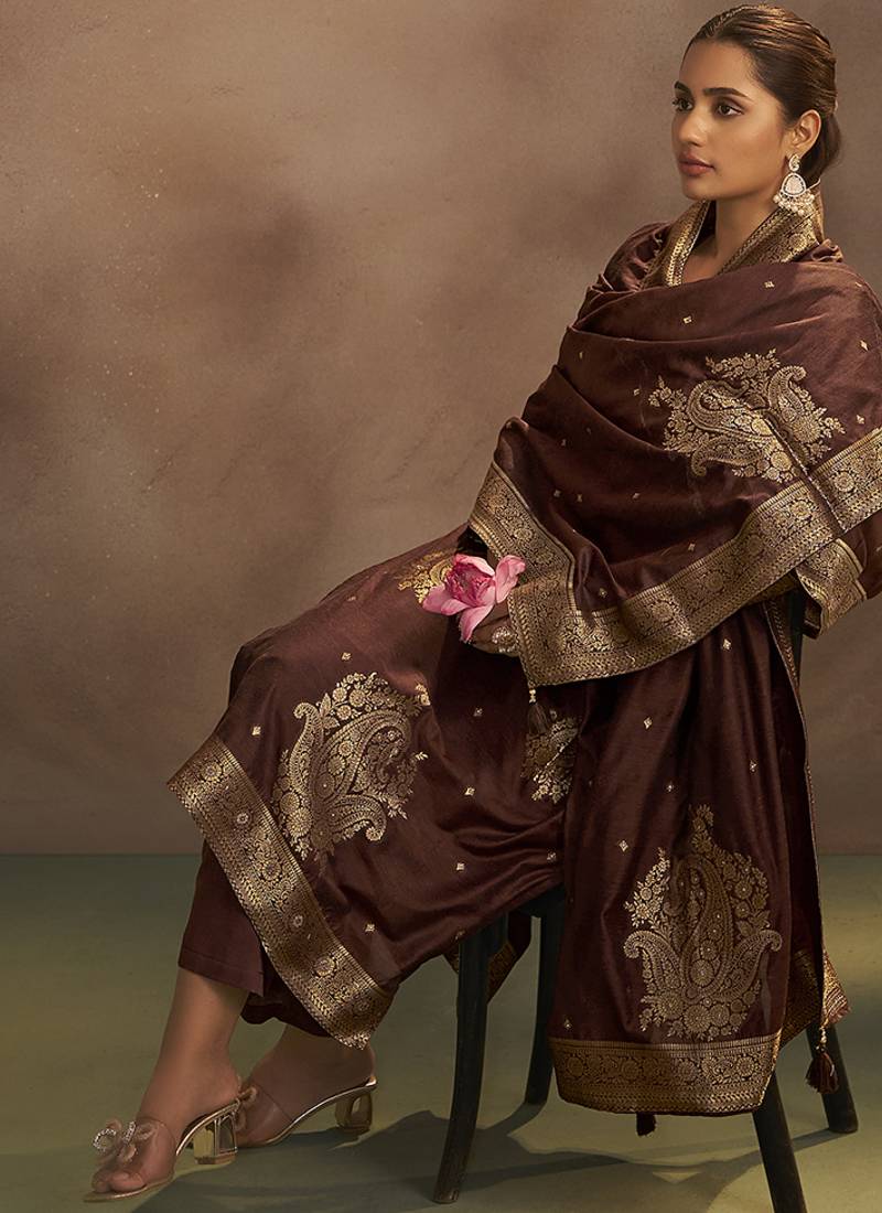 | Product Name | Brown Jacquard Art Silk Straight Kurta Set With Dupatta | |