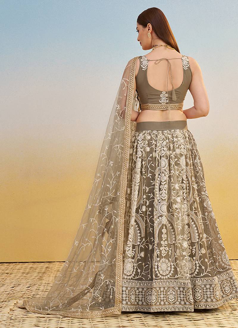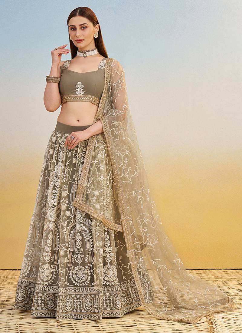 | Product Name | Brown Thread & Sequins Embroidery Work Net Lehenga | |