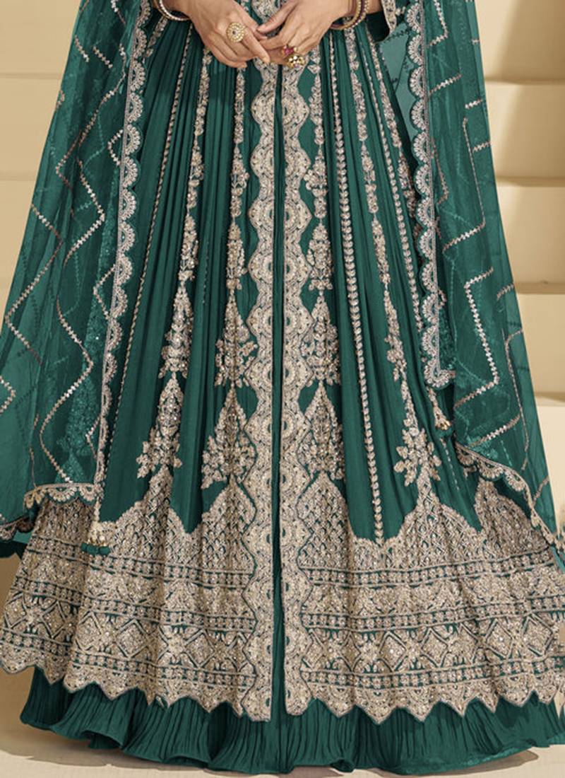 | Product Name | Dark Teal Embroidery Codding Sequence Work With Chinon Silk Anarkali & Dupatta For Women | |