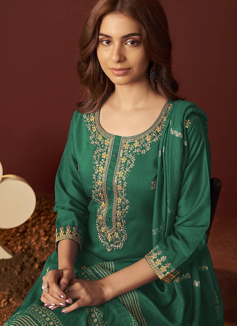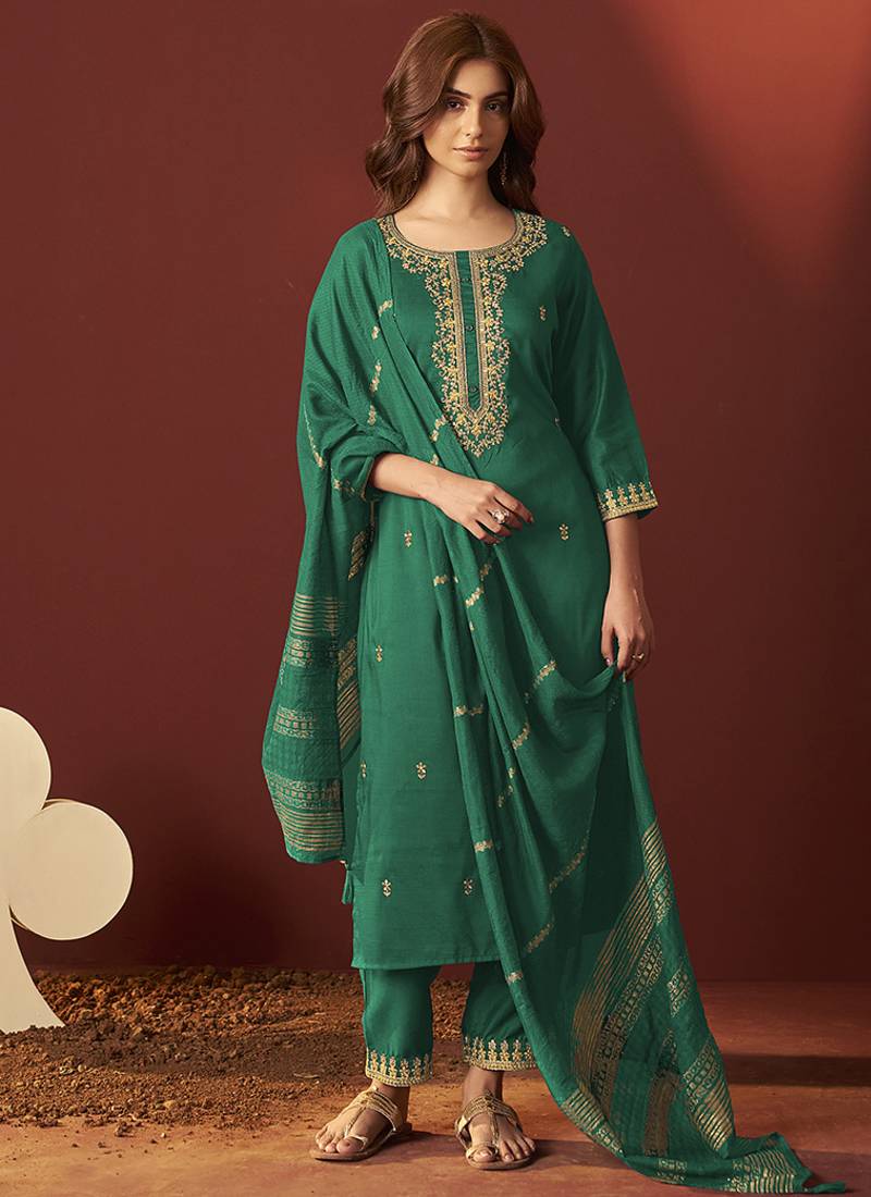 | Product Name | Green Embroidered Chinnon Straight Kurta Set With Dupatta | |