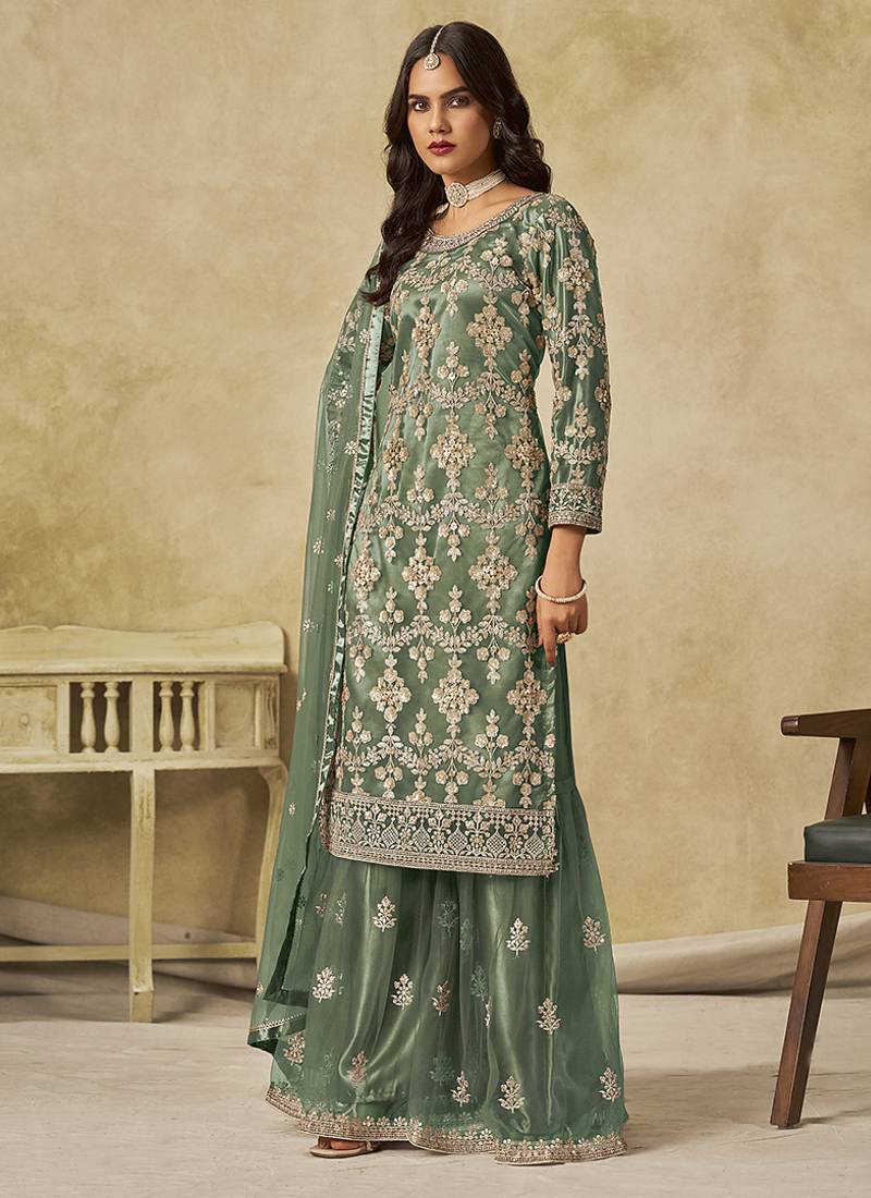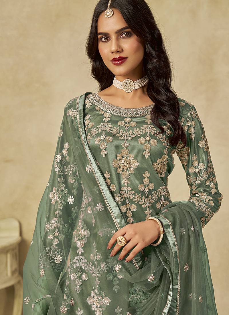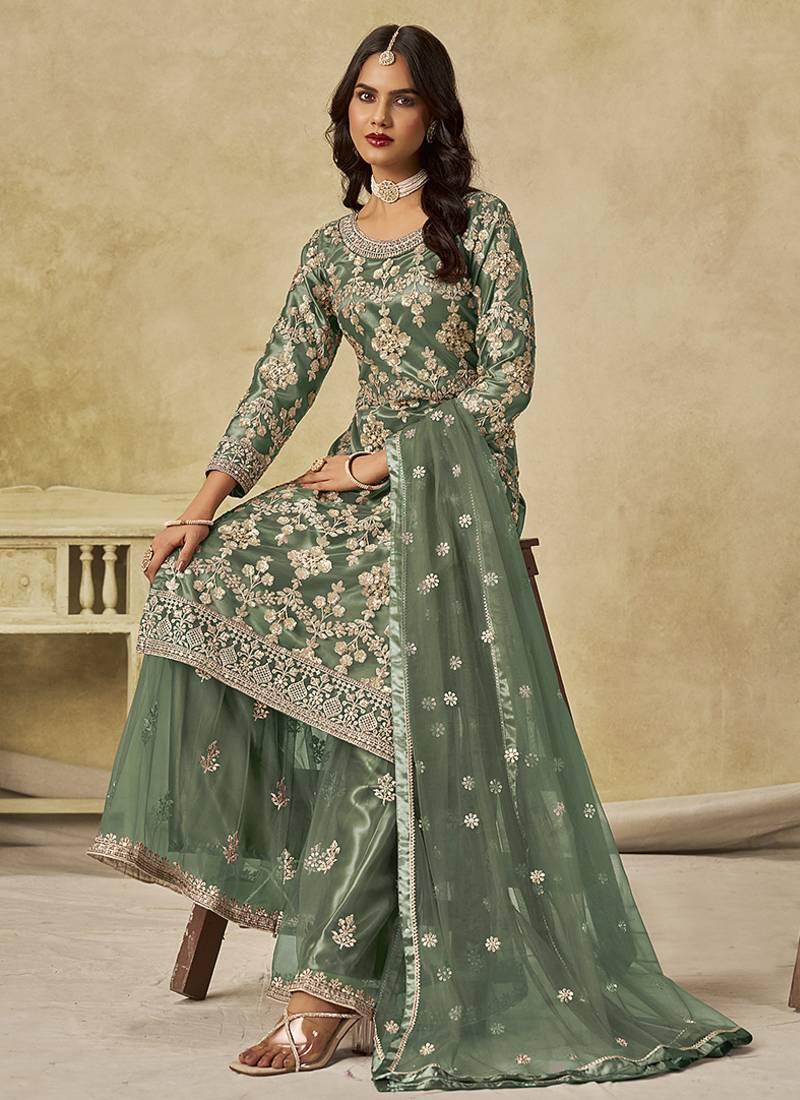 Product Name | Green Embroidered Zari Work Net Palazzo Suits | |