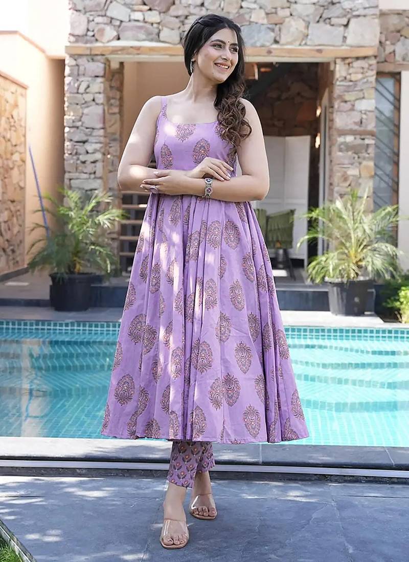 Product Name Lavender Digital Printed Maslin Anarkali Palazzo Style