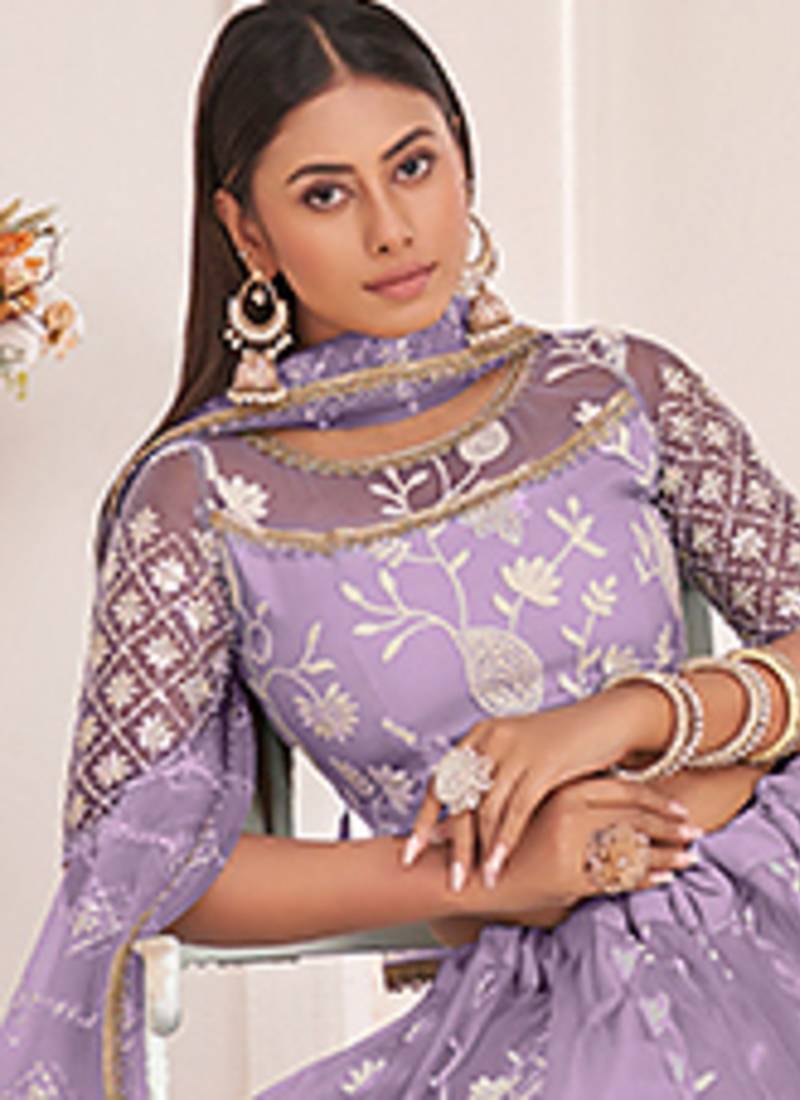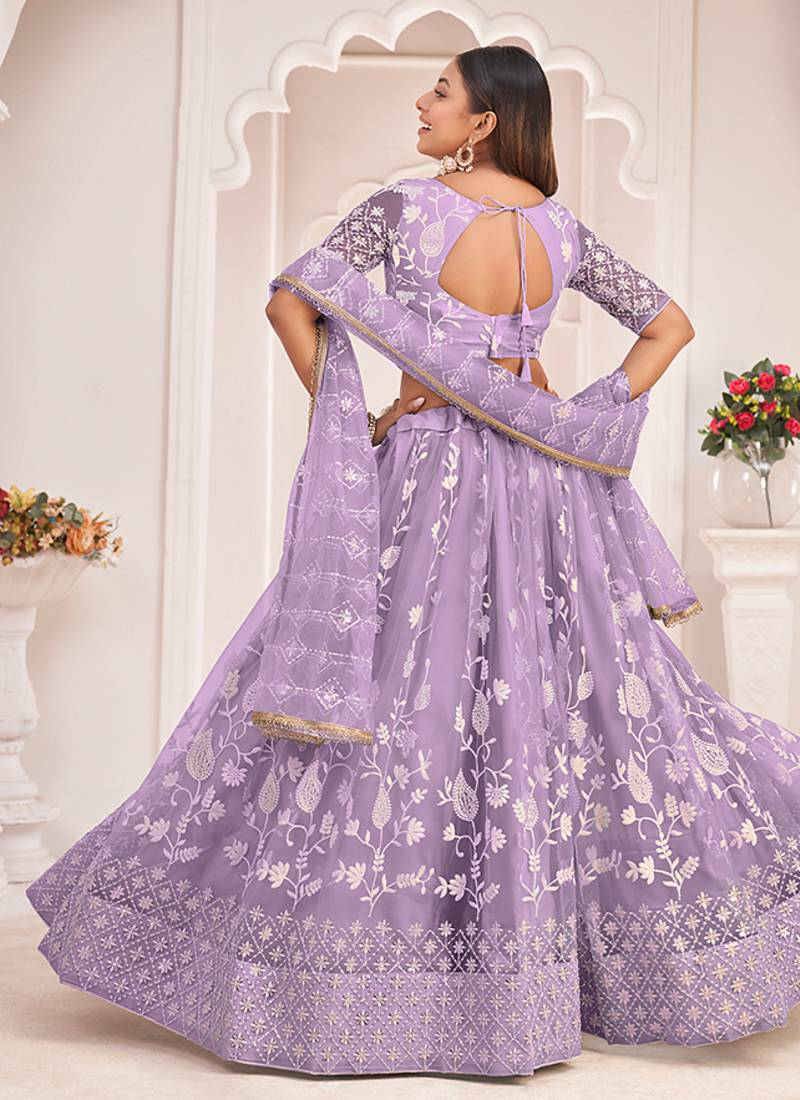 | Product Name | Lavender Thread & Sequins Embroidery Work Net Lehenga | |