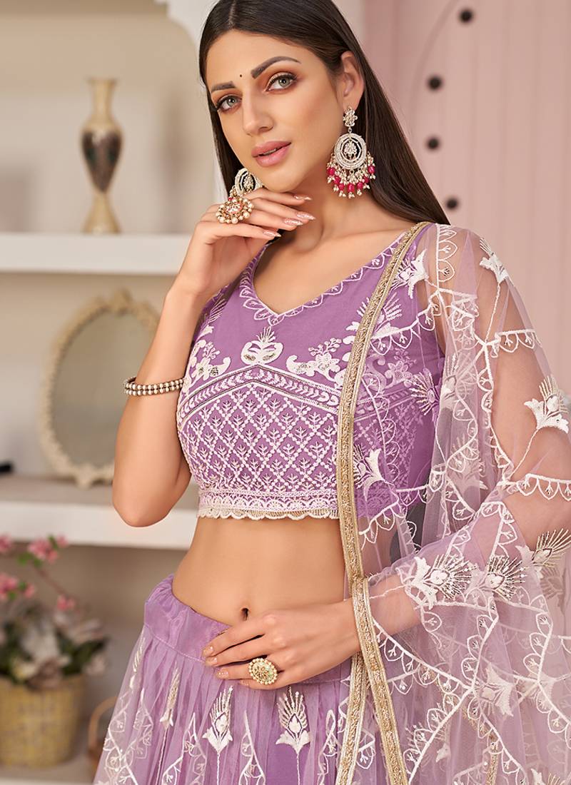 | Product Name | Light Lavender Thread & Sequins Embroidery Work Net Lehenga | |