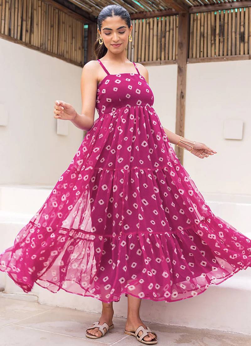 Product Name | Magenta Heavy Digital Printed Faux Georgette Gown Style | |