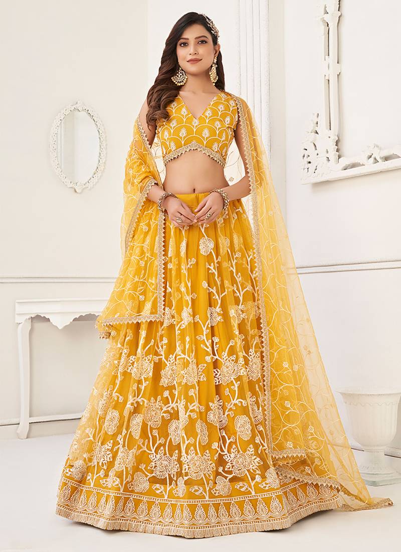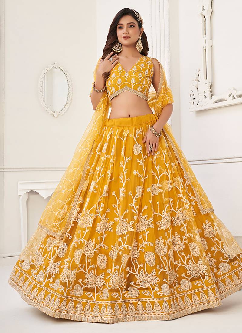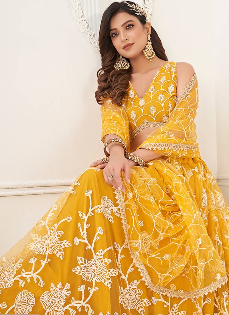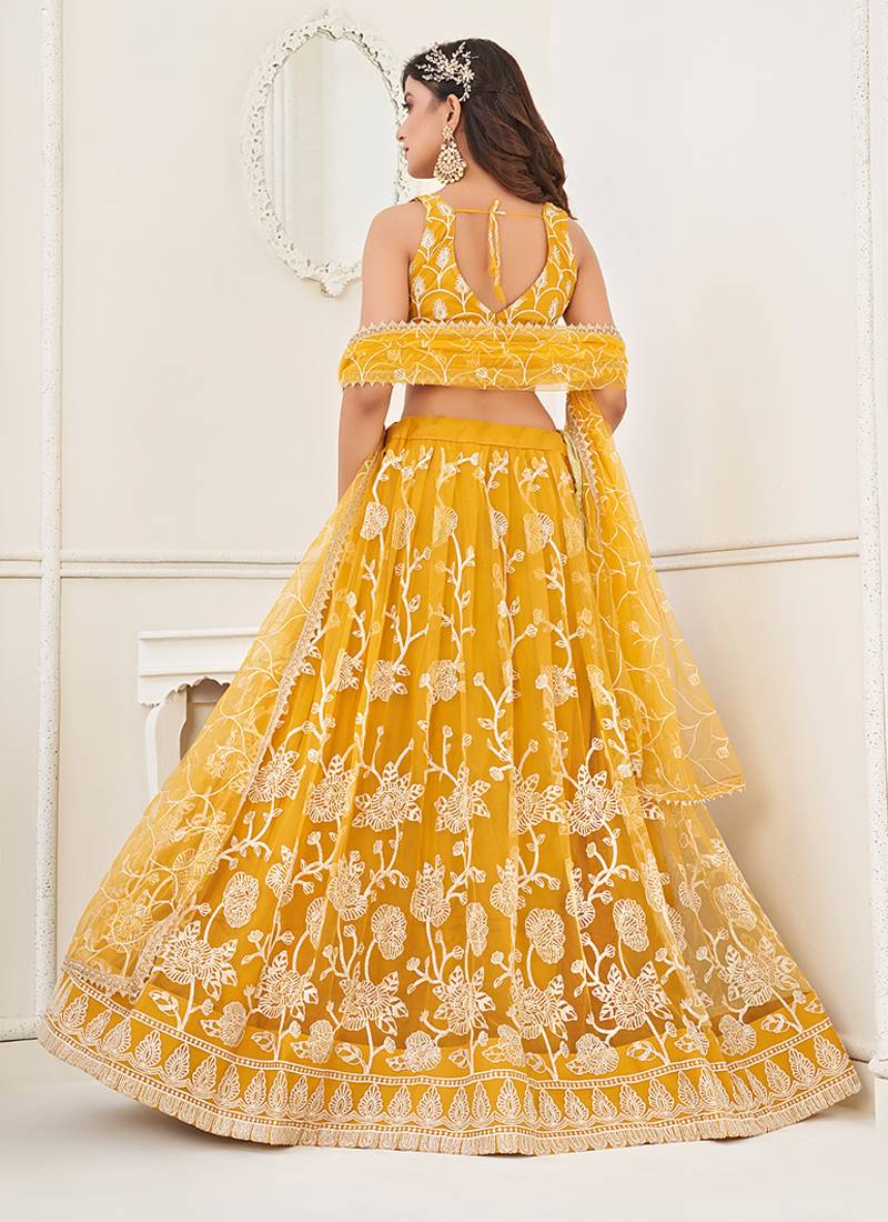| Product Name | Mustard Thread & Sequins Embroidery Work Net Lehenga | |
