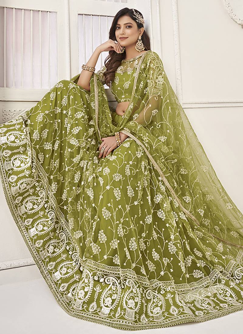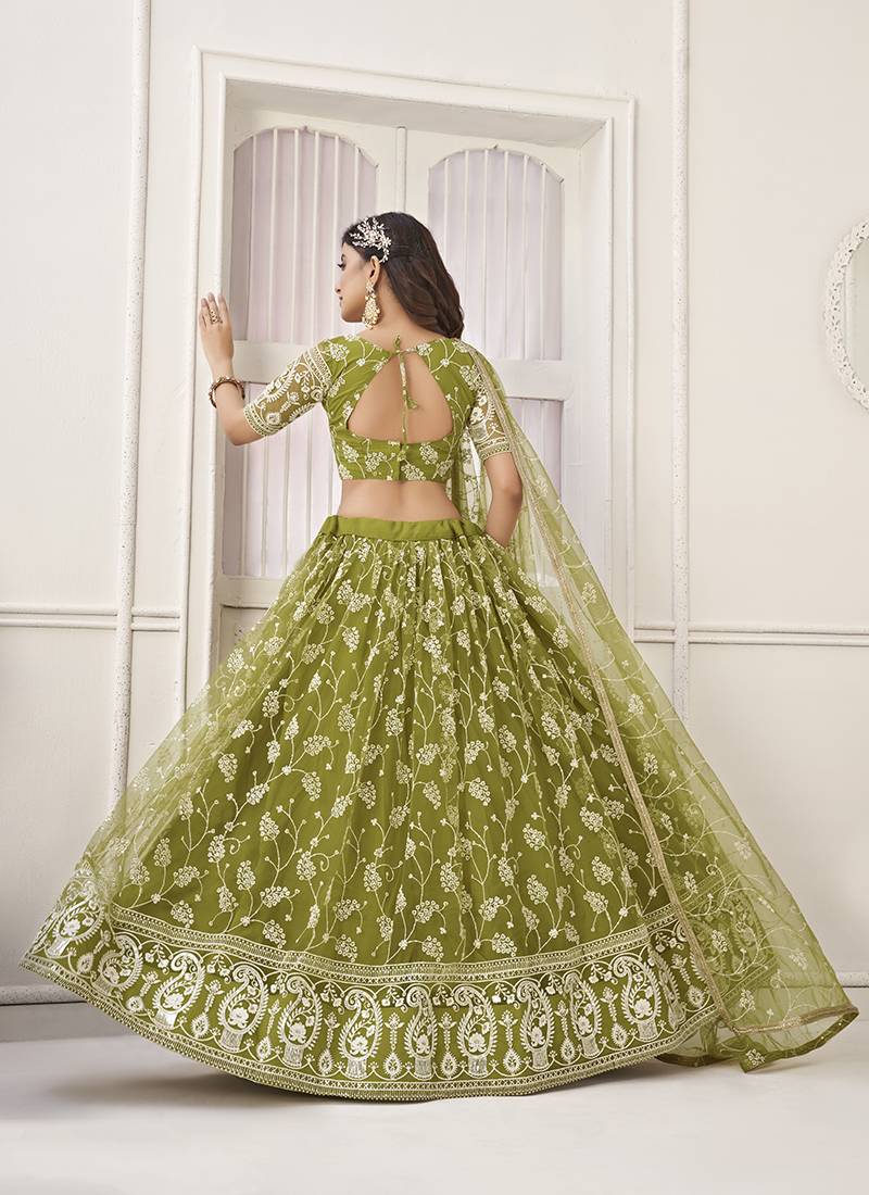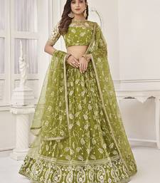 | Product Name | Olive Green Thread & Sequins Embroidery Work Net Lehenga | |