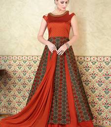 Orange silk heavy embroidered and printed designer gown semi stitched