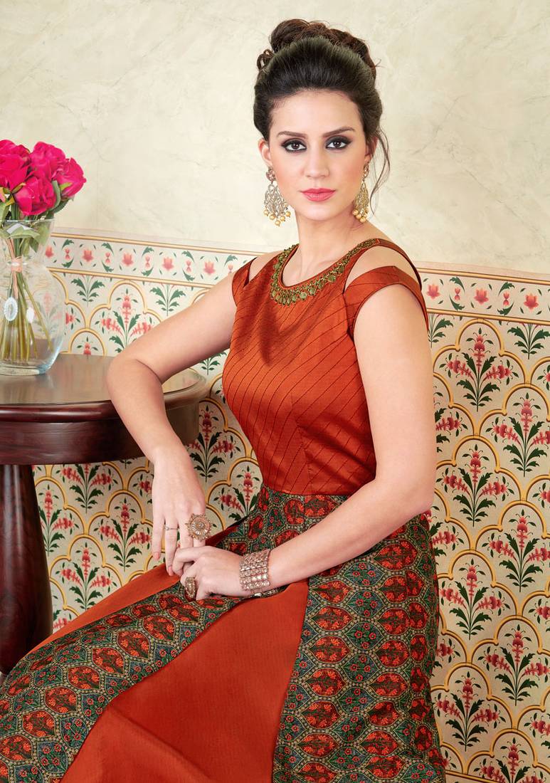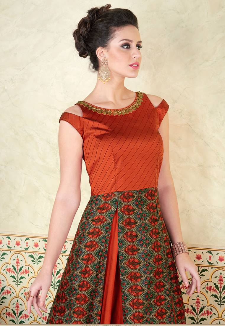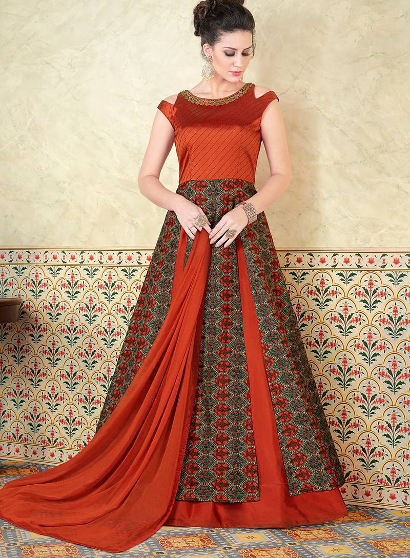 | Product Name | Orange Silk Heavy Embroidered And Printed Designer Gown | |