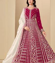 Pink embroidered sequence velvet anarkali suit semi stitched