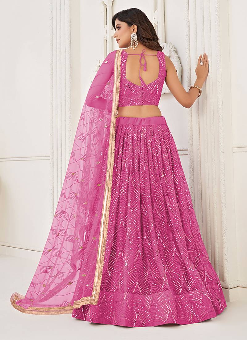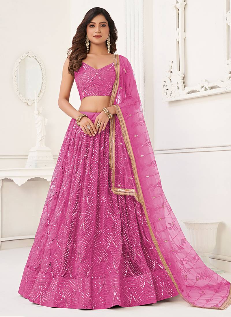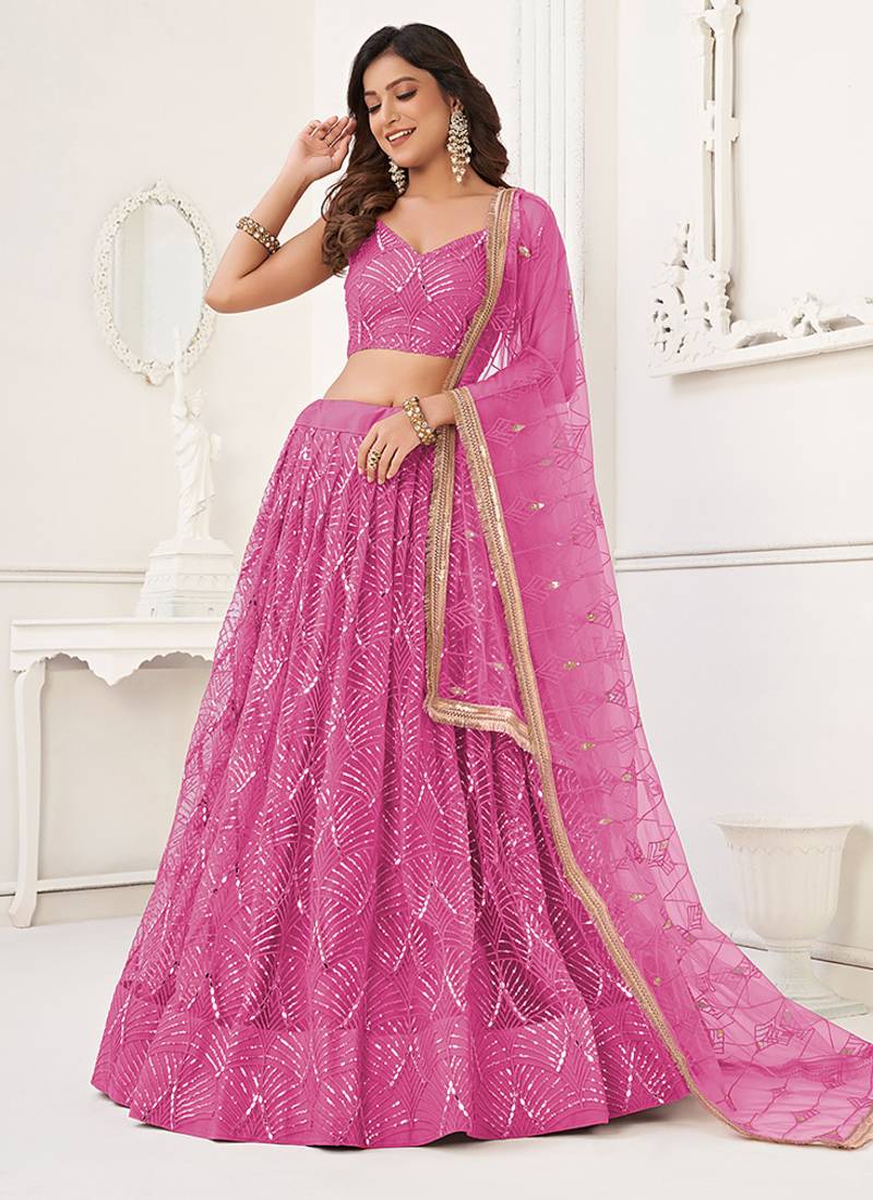 | Product Name | Pink Thread & Sequins Embroidery Work Net Lehenga | |