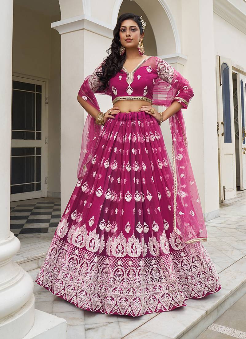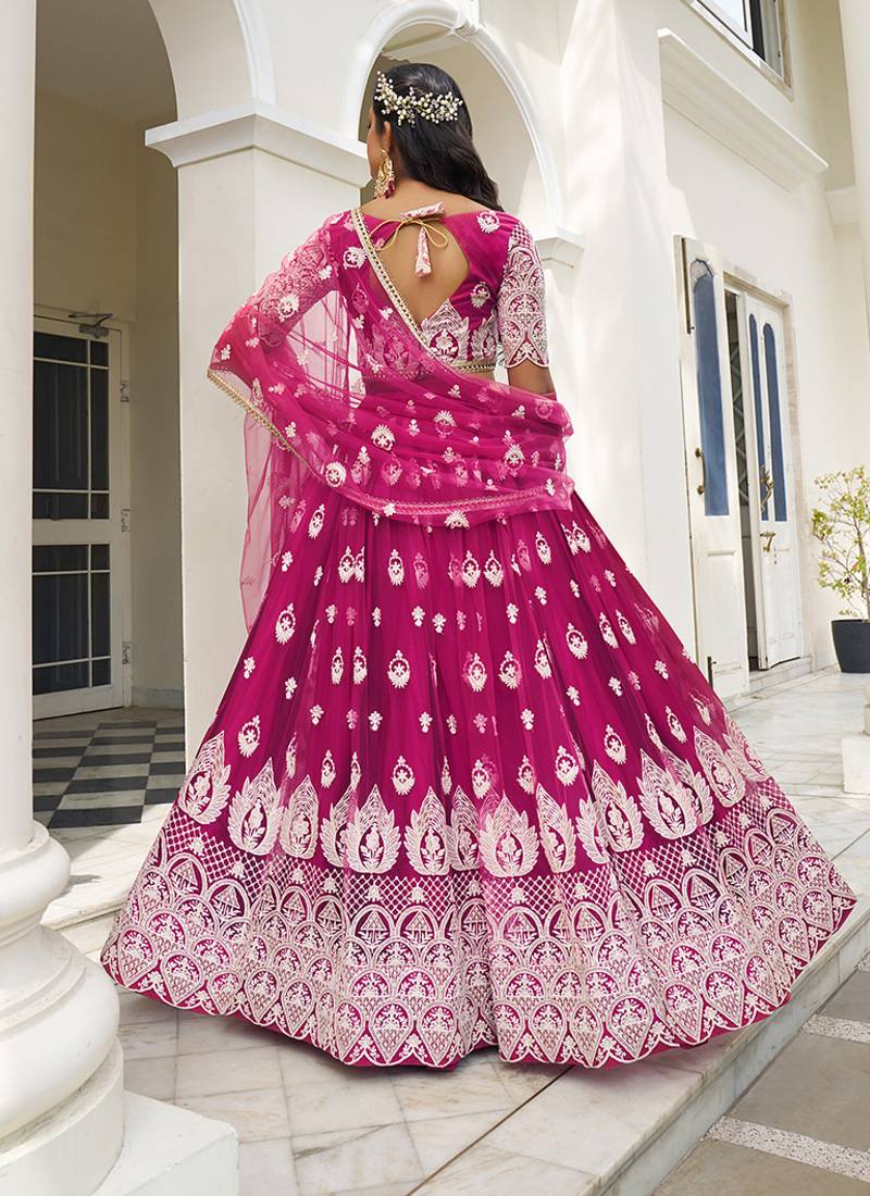 | Product Name | Pink Thread & Sequins Embroidery Work Net Lehenga | |