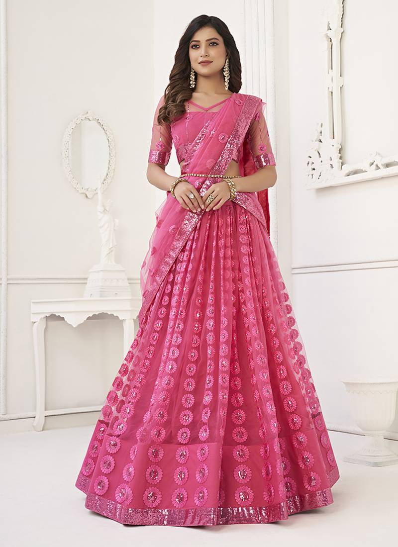 | Product Name | Pink Thread & Sequins Embroidery Work Net Lehenga | |