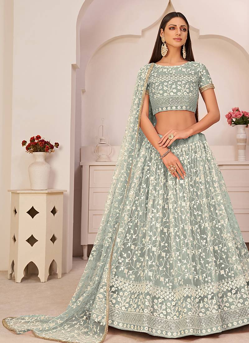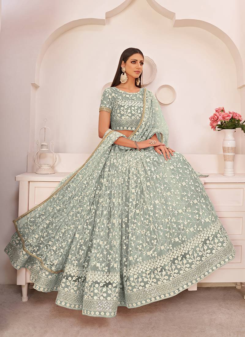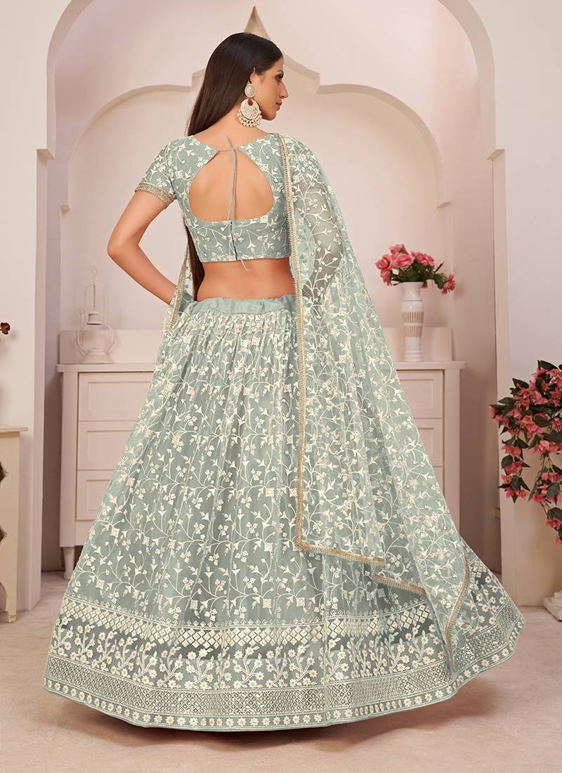 | Product Name | Pista Green Thread & Sequins Embroidery Work Net Lehenga | |