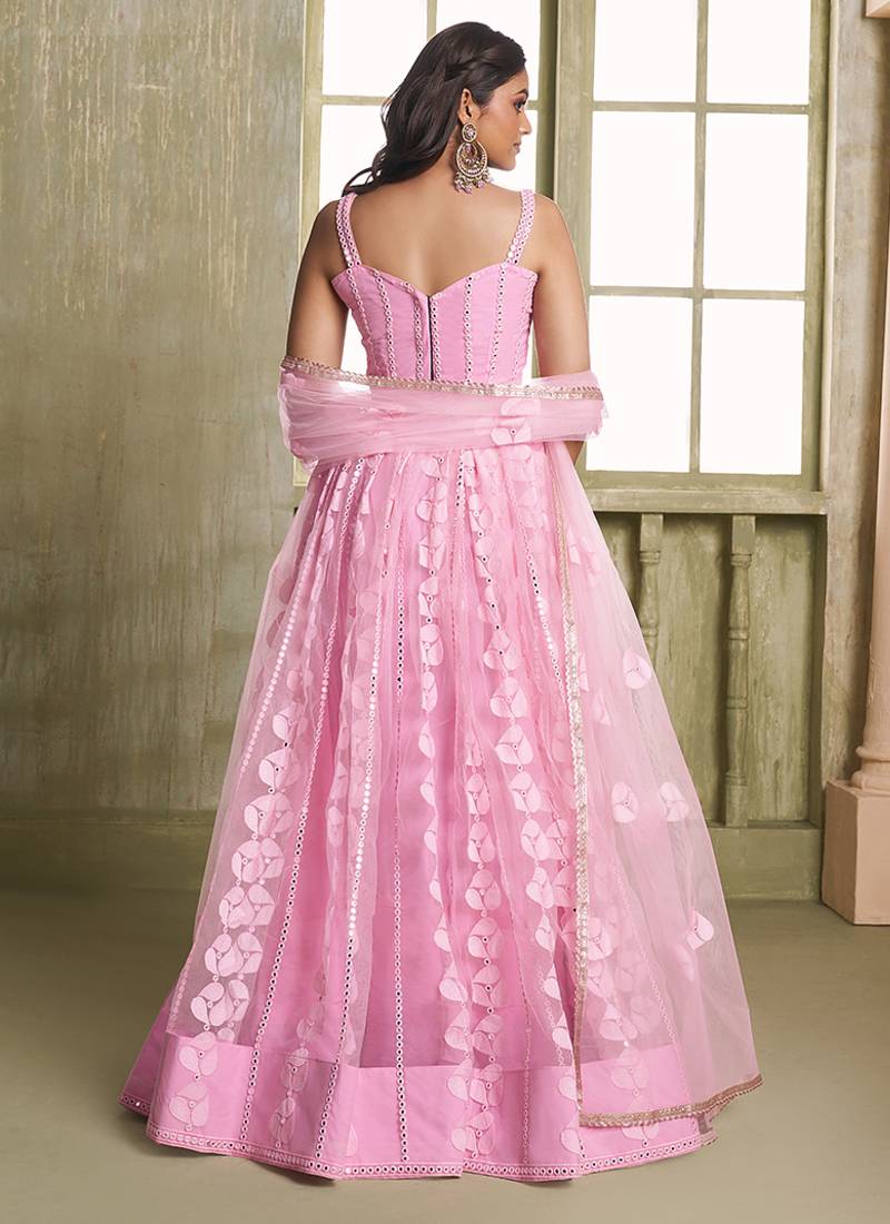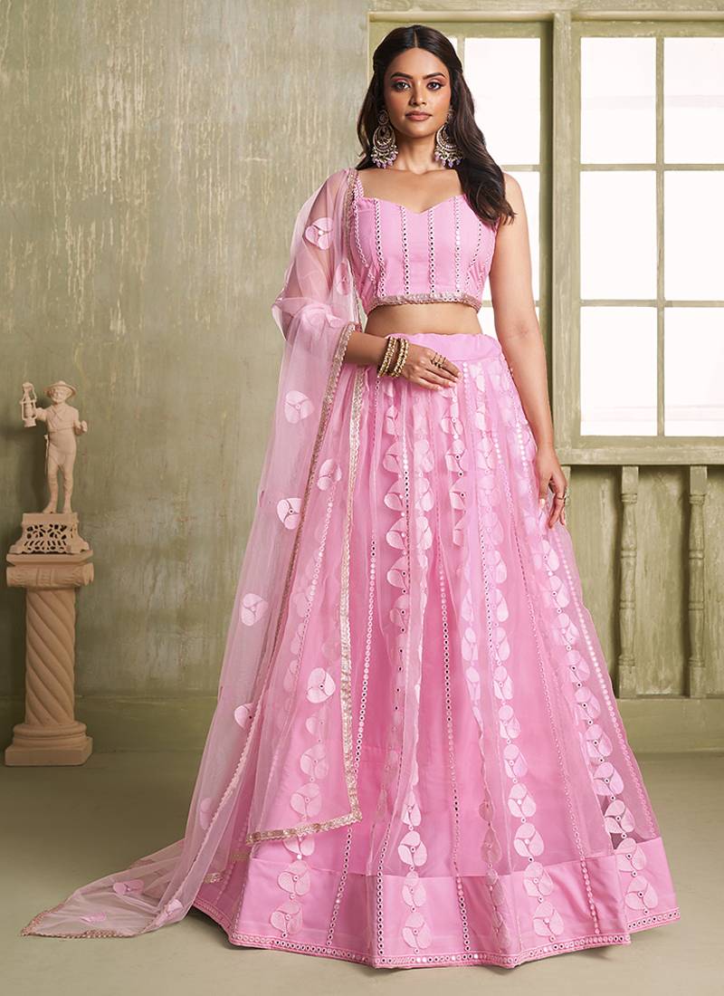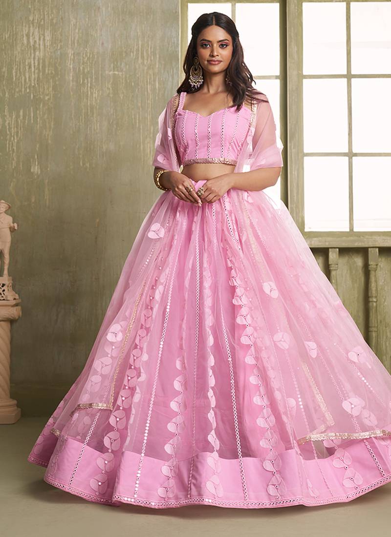 | Product Name | Pistal Pink Thread & Sequins Embroidery Work Net Lehenga | |