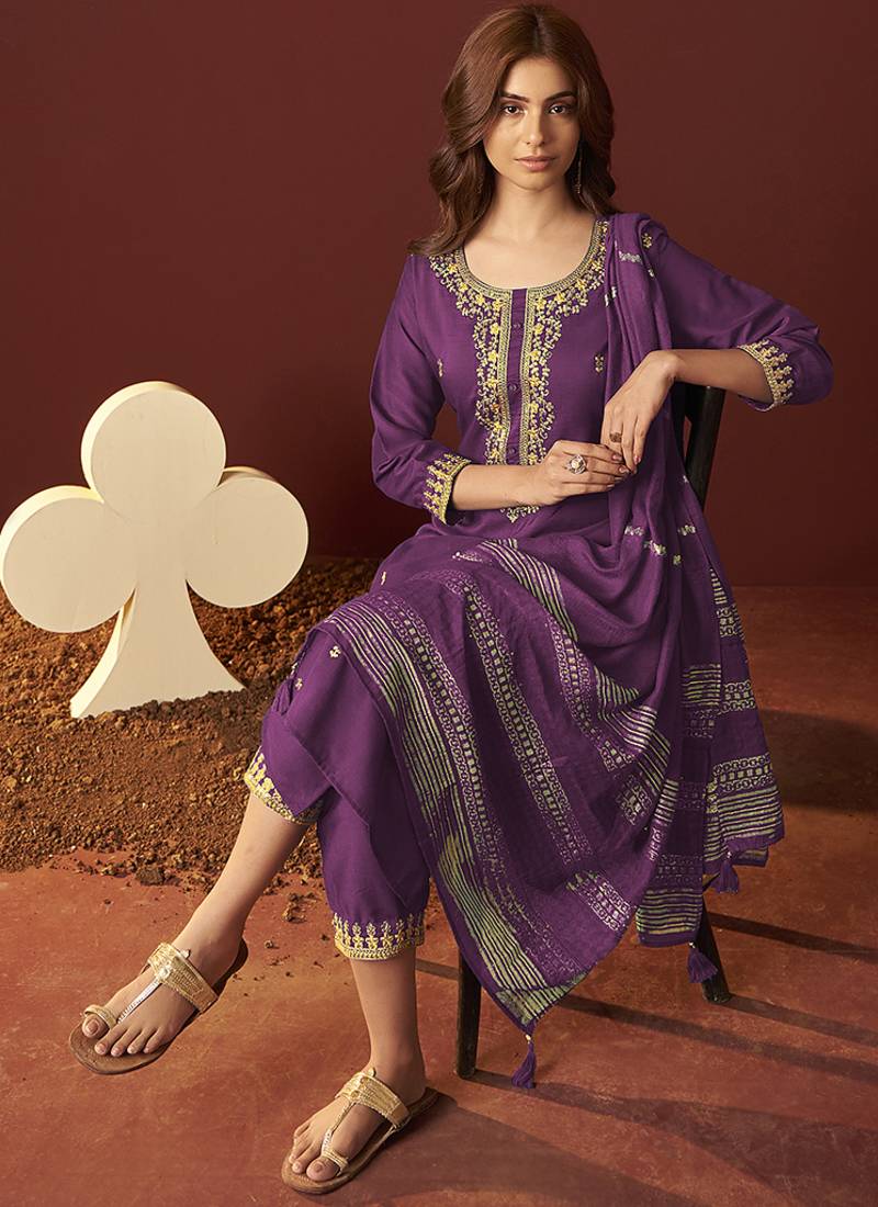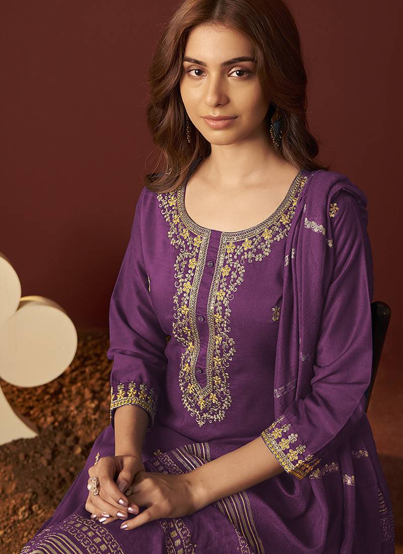 | Product Name | Purple Embroidered Chinnon Straight Kurta Set With Dupatta | |