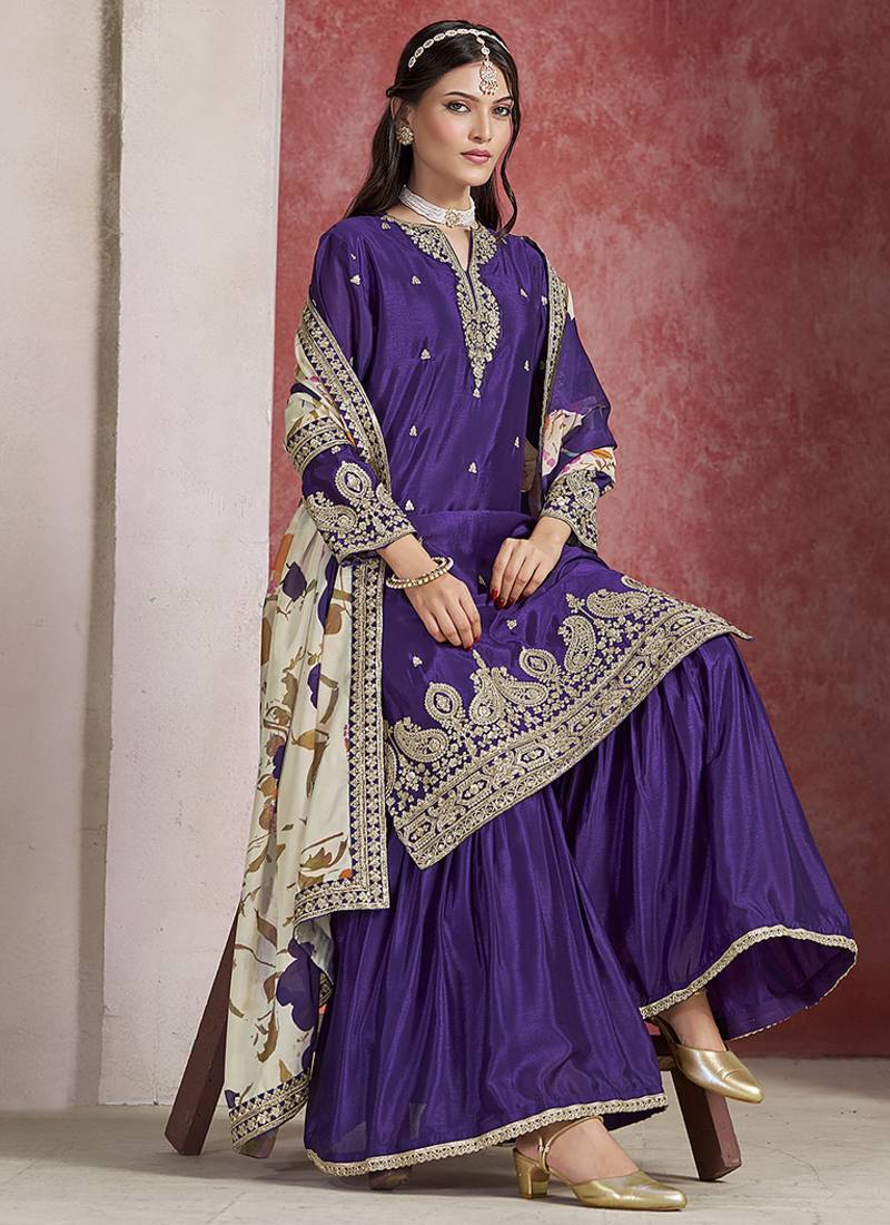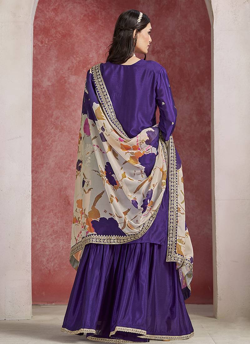 Product Name | Purple Embroidered Chinon Sharara Full Stitched Free Size | |