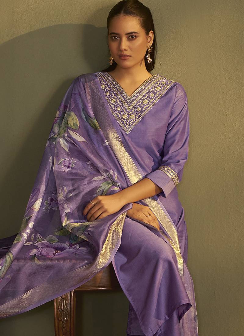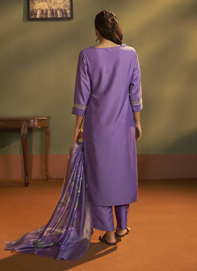 | Product Name | Purple Embroidery Cotton Blend Straight Kurta Set With Printed Dupatta | |