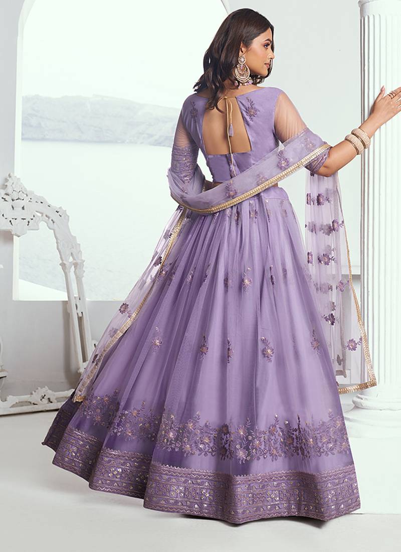 | Product Name | Purple Thread & Sequins Embroidery Work Net Lehenga | |
