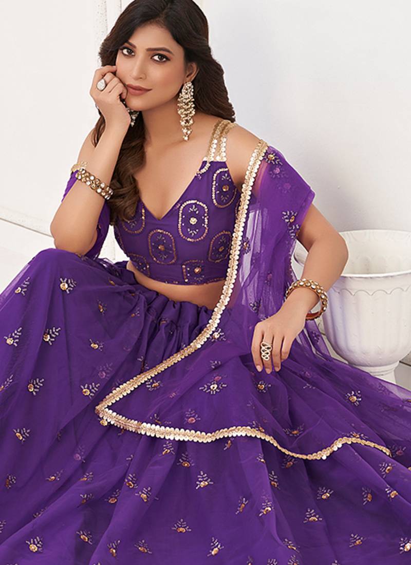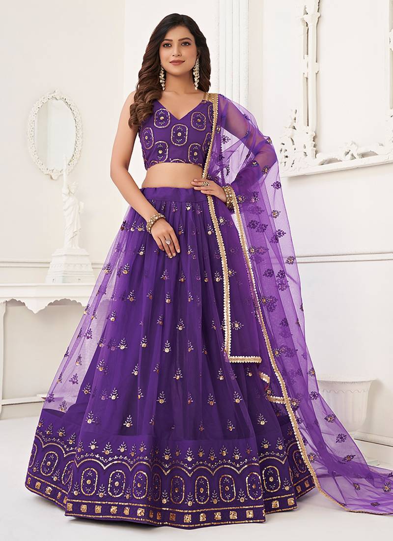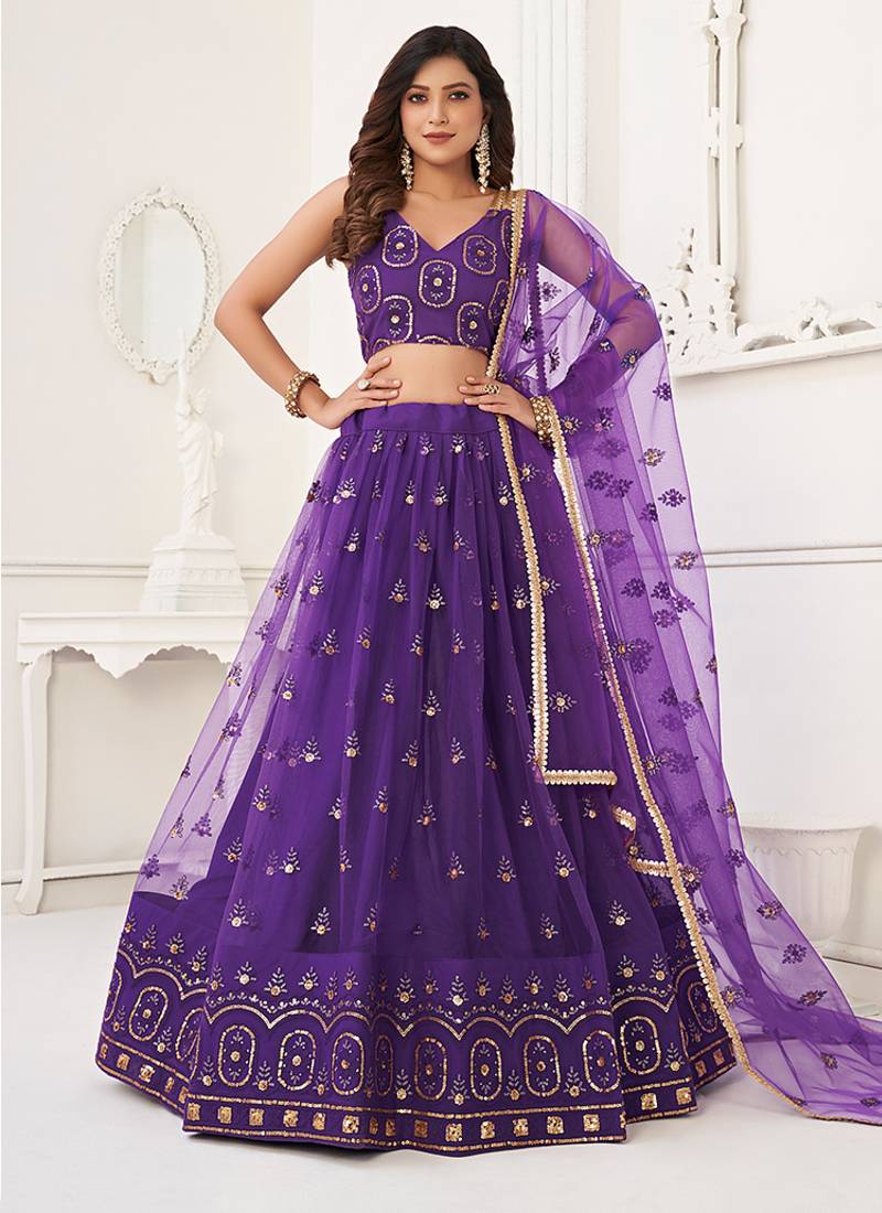 | Product Name | Purple Thread & Sequins Embroidery Work Net Lehenga | |