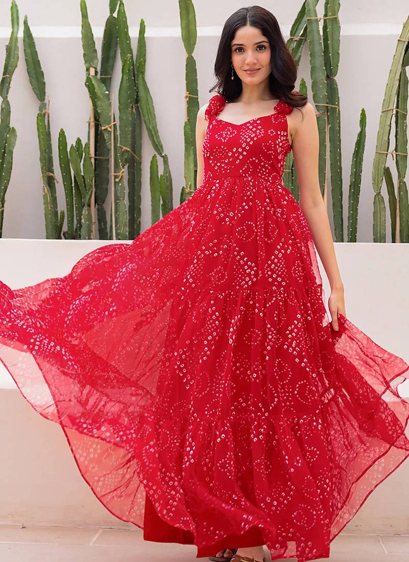 Product Name | Red Heavy Digital Printed Faux Georgette Anarkali Fully Flared Gwon Style | |