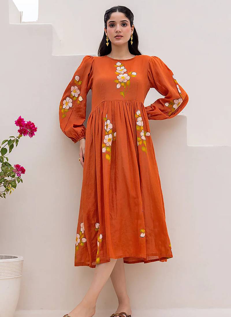 Product Name | Rust Orange Digital Print Full Round Flair Kota Checks Kurti | |