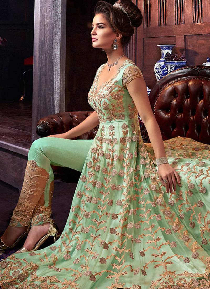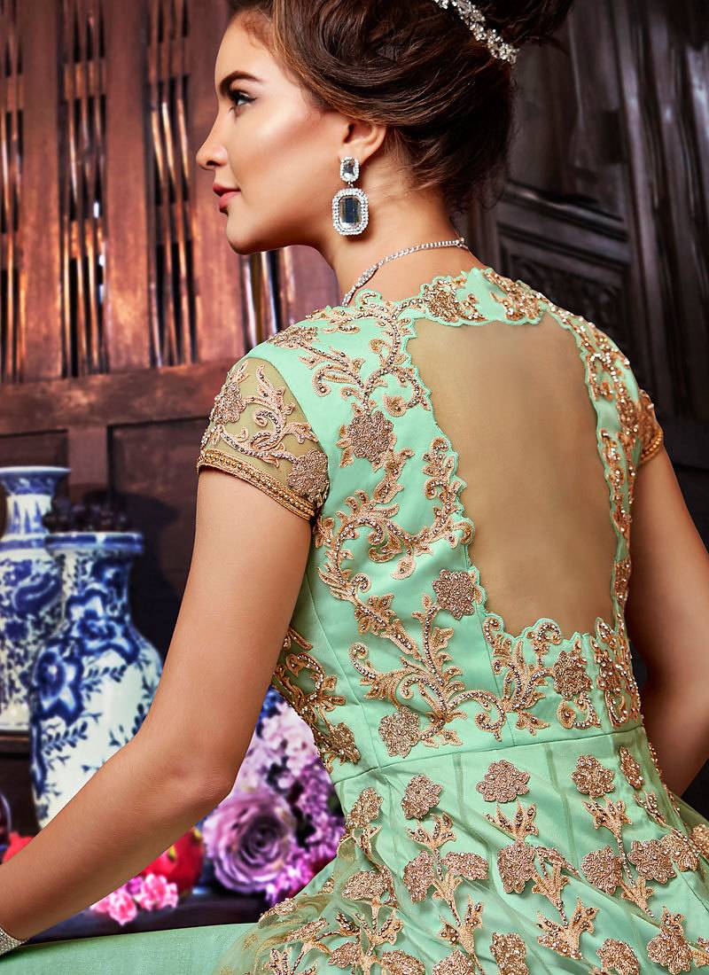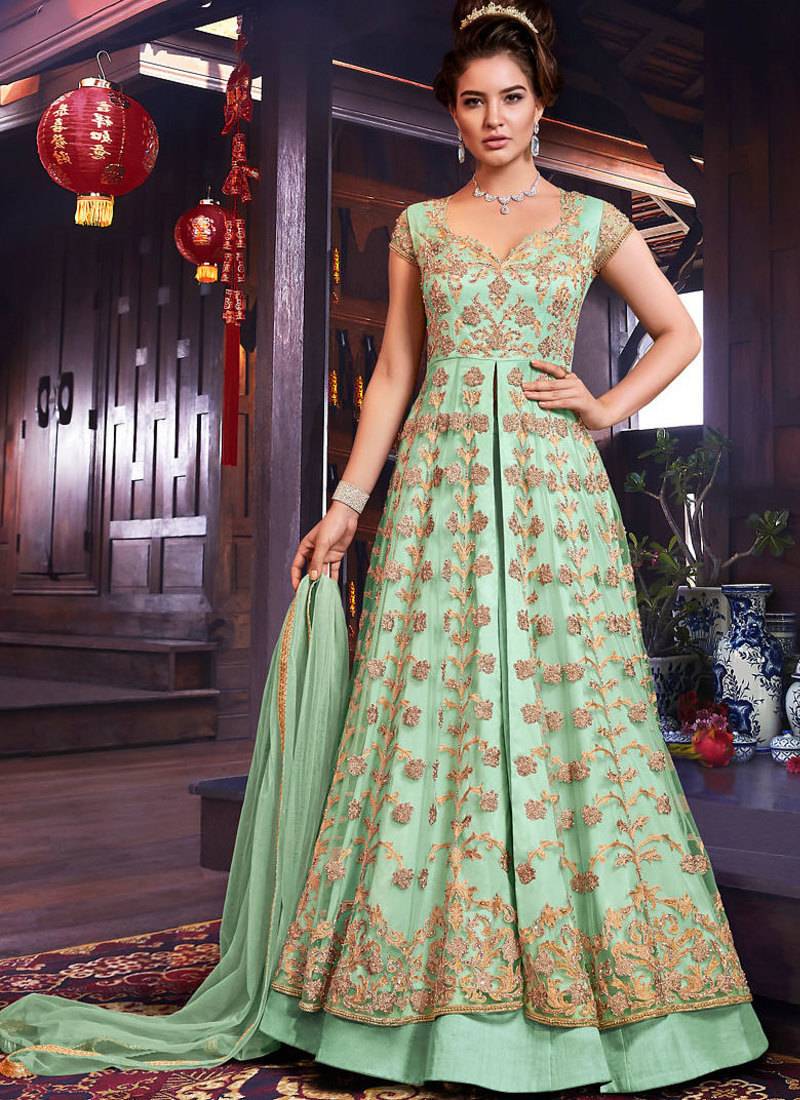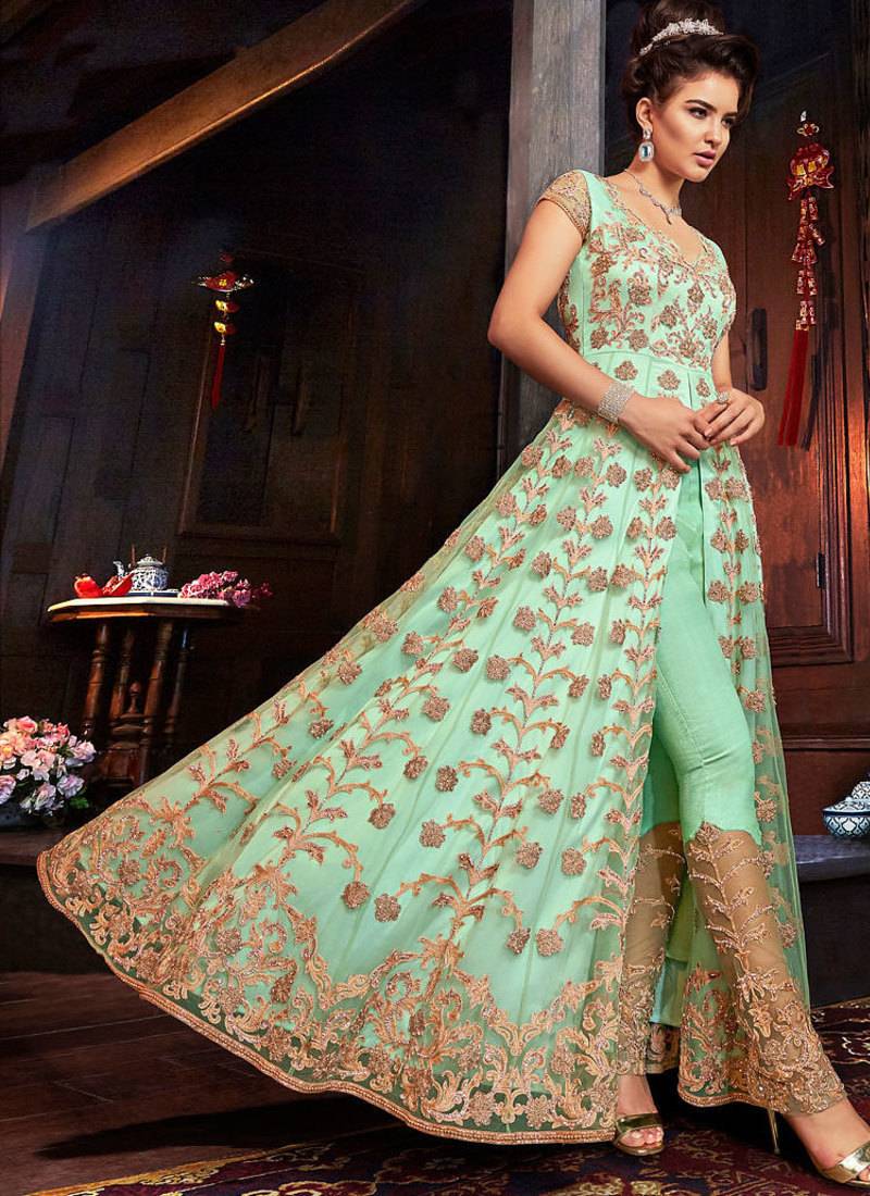 | Product Name | Sea Green Net Heavy Embroidered Designer Semi Stiched Suit | |