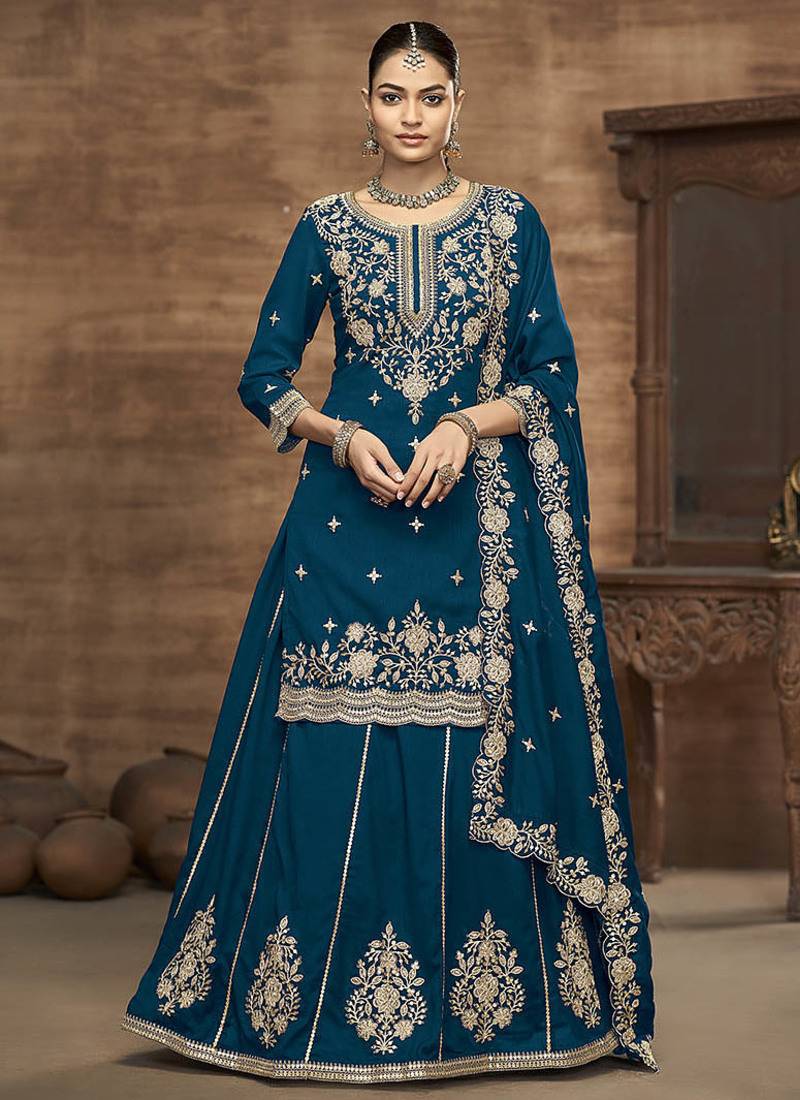 Product Name | Teal Blue Embroidered Silk Free Size Full Stitched Suit | |