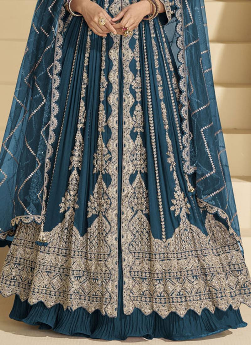 | Product Name | Teal Blue Embroidery Codding Sequence Work With Chinon Silk Anarkali Suit | |