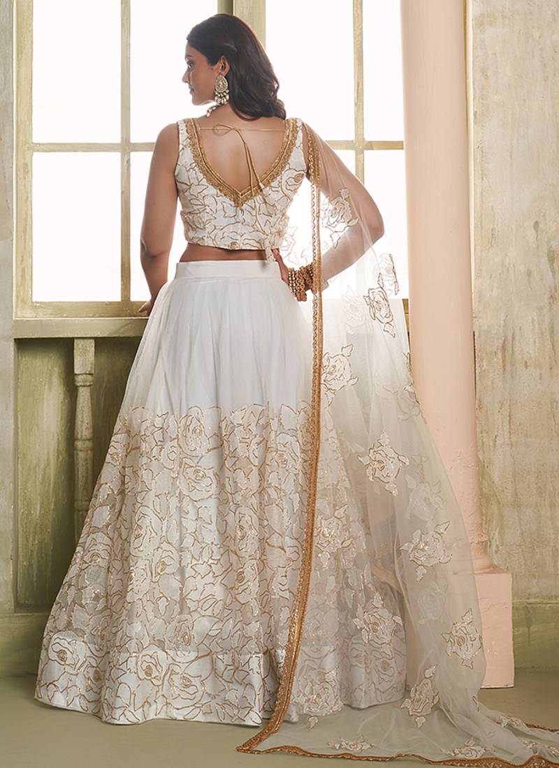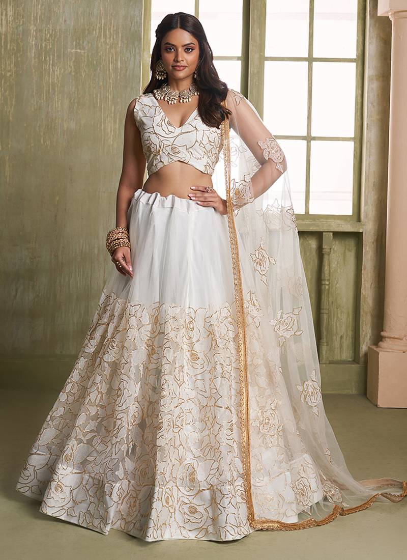 | Product Name | White Thread & Sequins Embroidery Work Net Lehenga | |