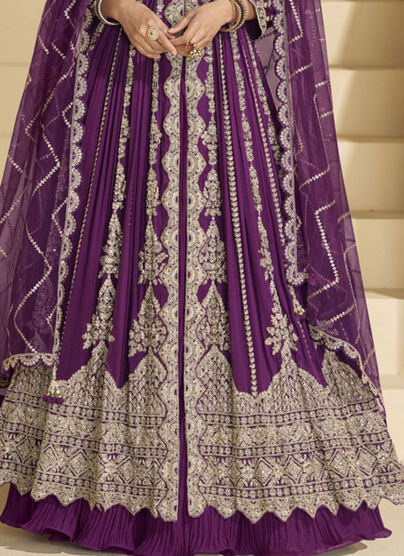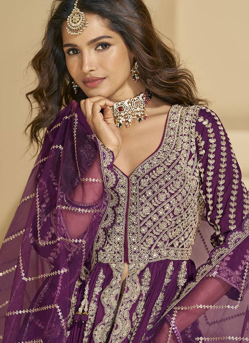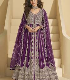 Wine embroidery codding sequence work with chinon silk anarkali suit semi stitched
