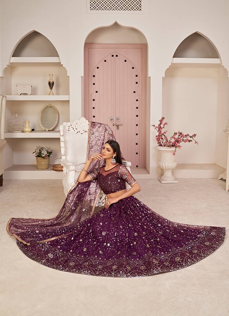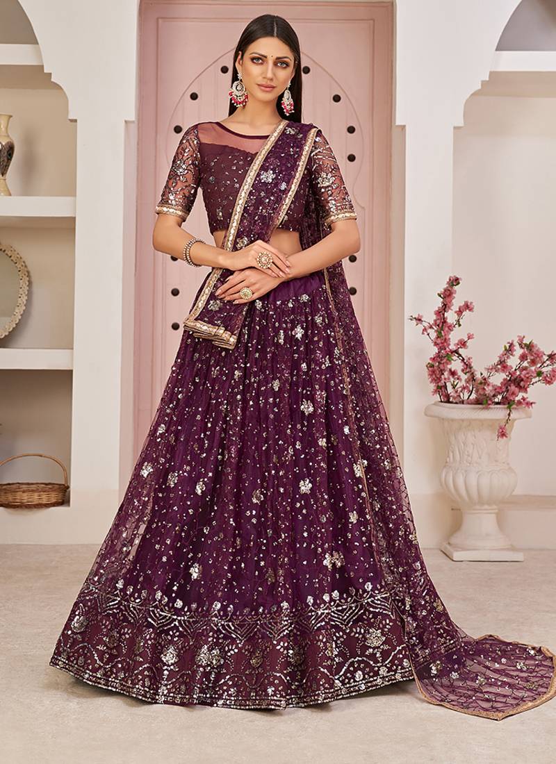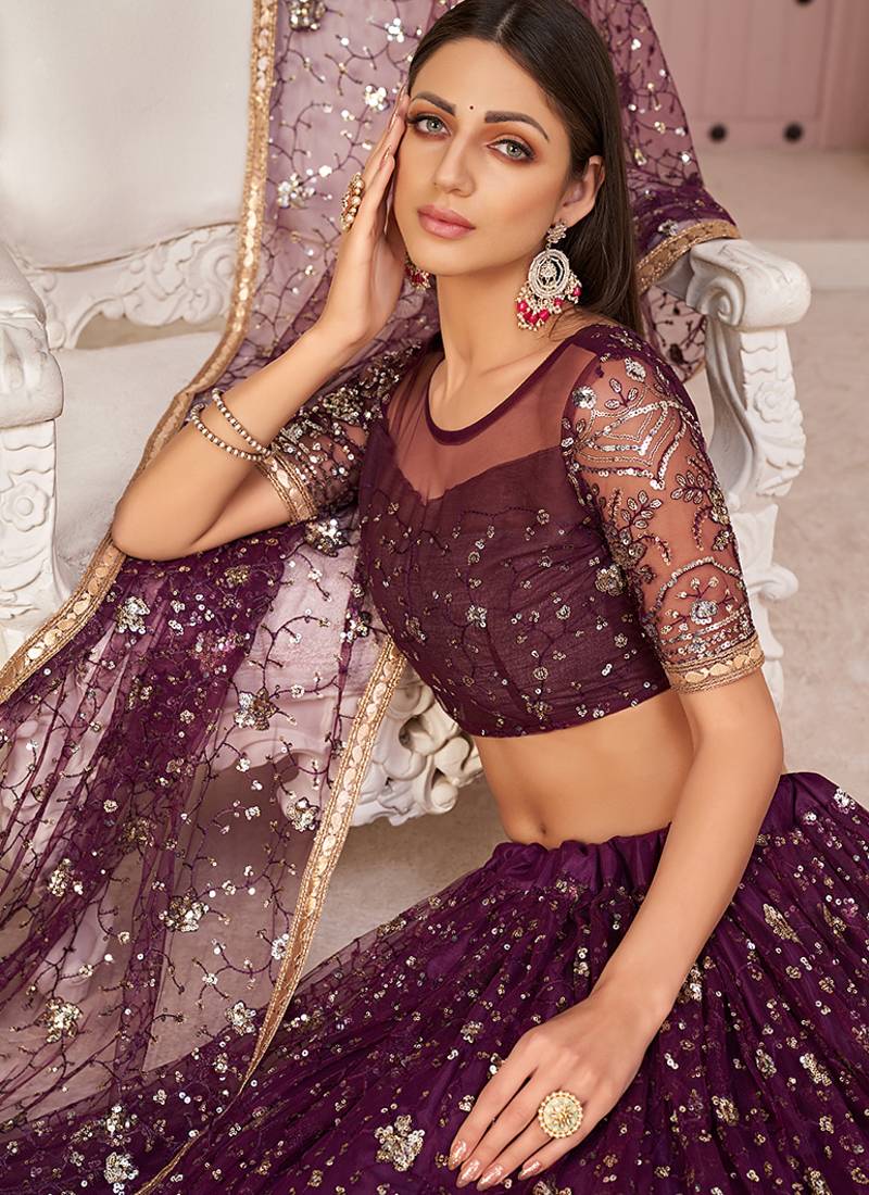 | Product Name | Wine Thread & Sequins Embroidery Work Net Lehenga | |
