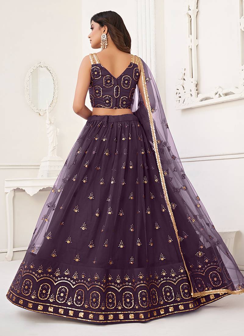 | Product Name | Wine Thread & Sequins Embroidery Work Net Lehenga | |