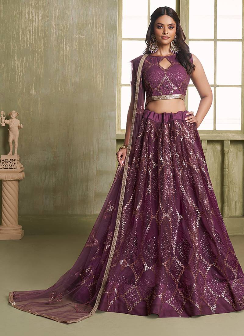 | Product Name | Wine Thread & Sequins Embroidery Work Net Lehenga | |